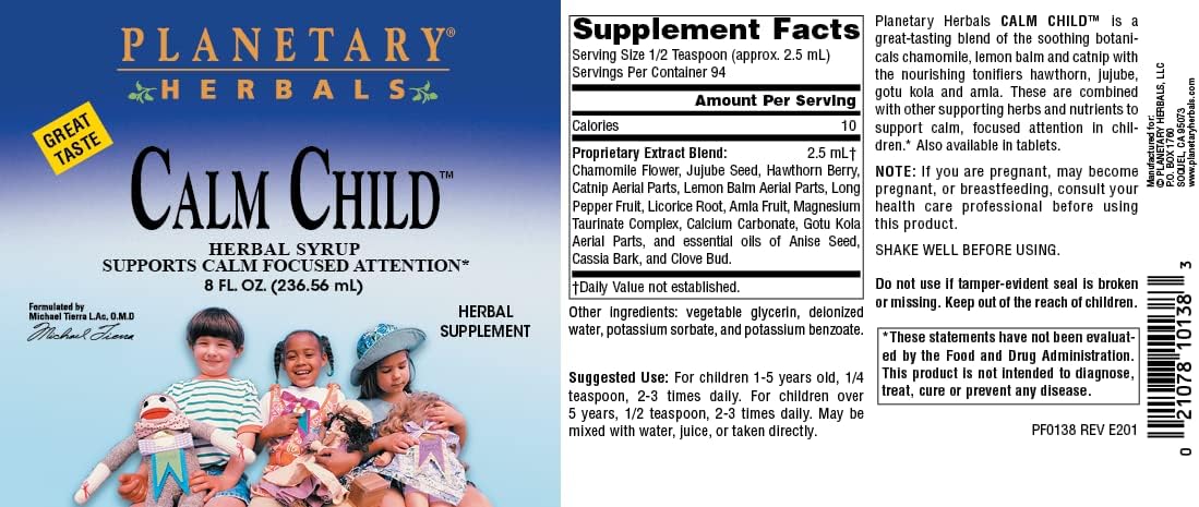 Planetary Herbals Calm Child Herbal Syrup - Includes Soothing Botanicals Chamomile, Lemon Balm, Catnip & More - 8Oz