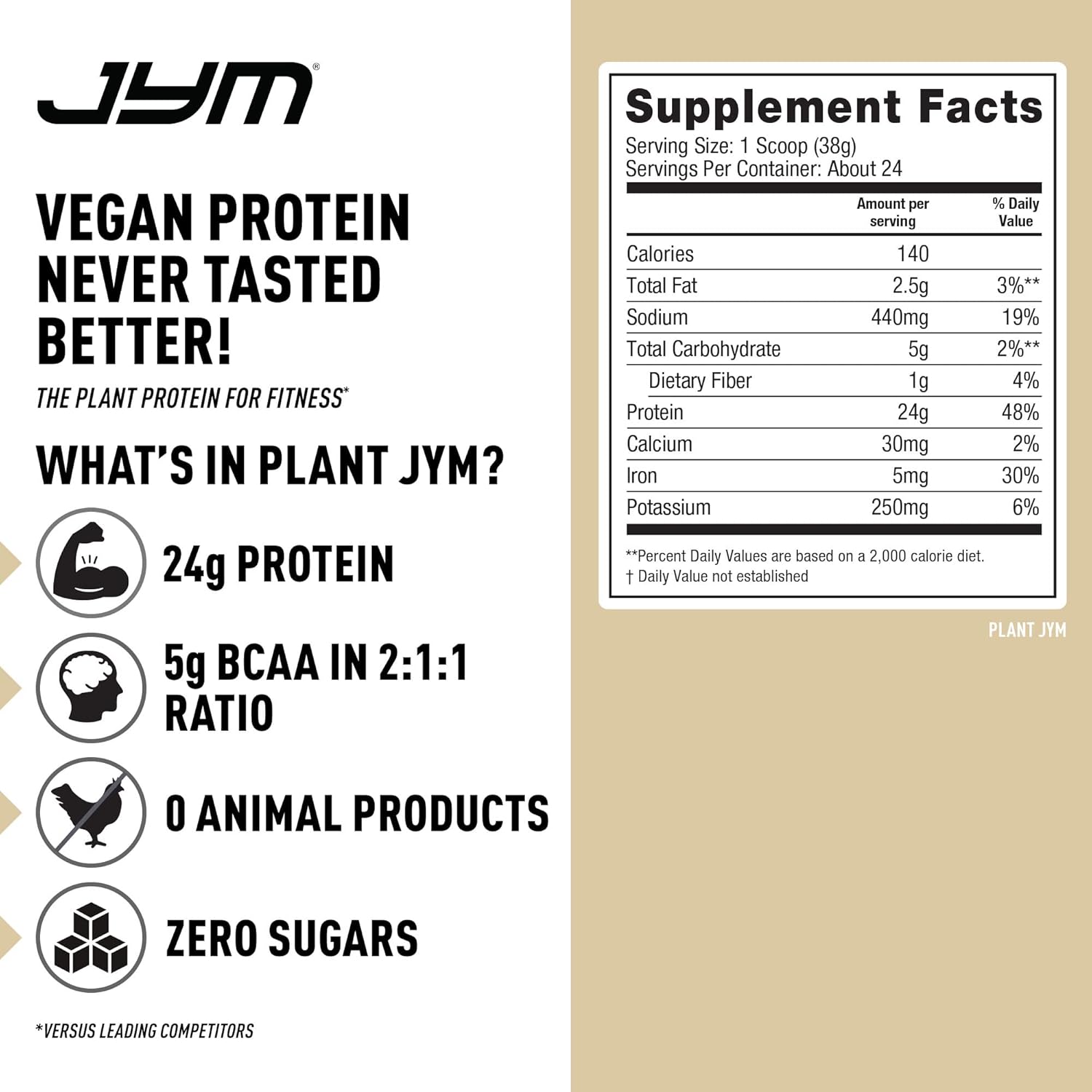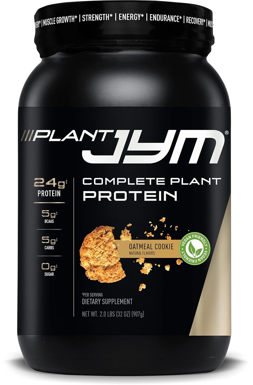 Plant JYM, 24g Premium Plant Based Protein Powder, Dairy Free, Vegan Friendly, 5g BCAA, Low Carb, Keto Friendly, Active Men & Woman, Advanced Recovery, by JYM Supplement Science, Oatmeal Cookie, 2lbs,You Wonât Believe Your Taste Buds âThe flavor and mouthfeel of the Plant Jym is so insanely good itâs hard to believe itâs even a plant protein. It doesnât take like on AT ALL, especially since itâs dairy free. Like all JYM Supplement Science, nutritional solutions, taste and texture are unparalleled with the Plant Jym. Rest assured you have never had anything that tastes this good with 24g of plant based protein, only 5g of carbs, and 0 fillers that are dairy-free,Recovery Focused Formulation - Plant JYM contains 5 grams of branch chain amino acids (BCAAs) and specifically 2.5 grams of leucine, Plant JYM meets this threshold to trigger muscle protein synthesis. This is critical in helping to accelerate recovery from any type of training session while also helping to limit delayed onset muscle soreness (DOMS). These help round out the formulation to ensure a proper amino acid profile to include all essential amino acids (EAA) in their optimal ratios,High in Protein & Dairy-Free Without Excess Calories âThe Plant JYM serves as an excellent source of protein at only 140 calories per serving. The combination of pea protein isolate and rice protein isolate provides you with critical macro-nutrients. These key protein sources help to ensure optimal recovery any time of the day without added calories, dairy, soy, or junk,Ultra-Smooth & Grit Free - While most plant proteins are created with good intentions, they canât escape the typical grit and chalkiness associated with them. Plant JYM on the other hand is silky smooth with a decadent creamy texture. This technological breakthrough allows Plant JYM to be mixed effortlessly in a shaker or in a blender for your more creative recipes. It also mixes well with fruits and other ingredients of your choice to make a custom macro & micronutrient dense smoothie to your personal liking,Stacking Made Easy â Plant JYM works synergistically within the JYM Supplement Science line that includes the award winning Pre JYM, Vita JYM, Omega JYM, and much more. Nowhere else will you find a COMPLETE health and fitness solution that incorporates training, diet strategy, and nutraceuticals designed by Yale PhD, Dr. Jim Stoppani. If you want REAL results, join the #JYMARMY today for a new you tomorrow