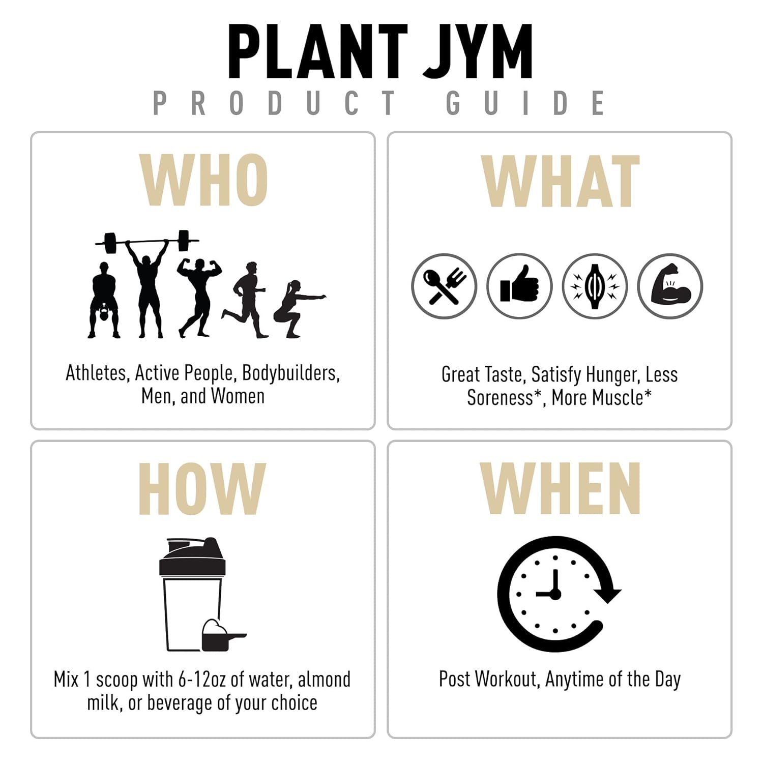 You Wonât Believe Your Taste Buds âThe flavor and mouthfeel of the Plant Jym is so insanely good itâs hard to believe itâs even a plant protein. It doesnât take like on AT ALL, especially since itâs dairy free. Like all JYM Supplement Science, nutritional solutions, taste and texture are unparalleled with the Plant Jym. Rest assured you have never had anything that tastes this good with 24g of plant based protein, only 5g of carbs, and 0 fillers that are dairy-free
