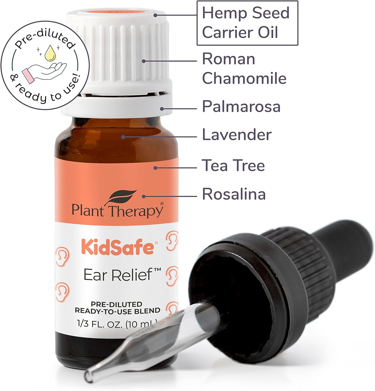 Plant Therapy Kidsafe Ear Relief Essential Oil Ear Drops Blend Pre-Diluted 10 Ml (1/3 Oz) 100% Pure, Children Ear Oil Drops, Natural Eardrops, For Kids And Adults, Therapeutic Grade