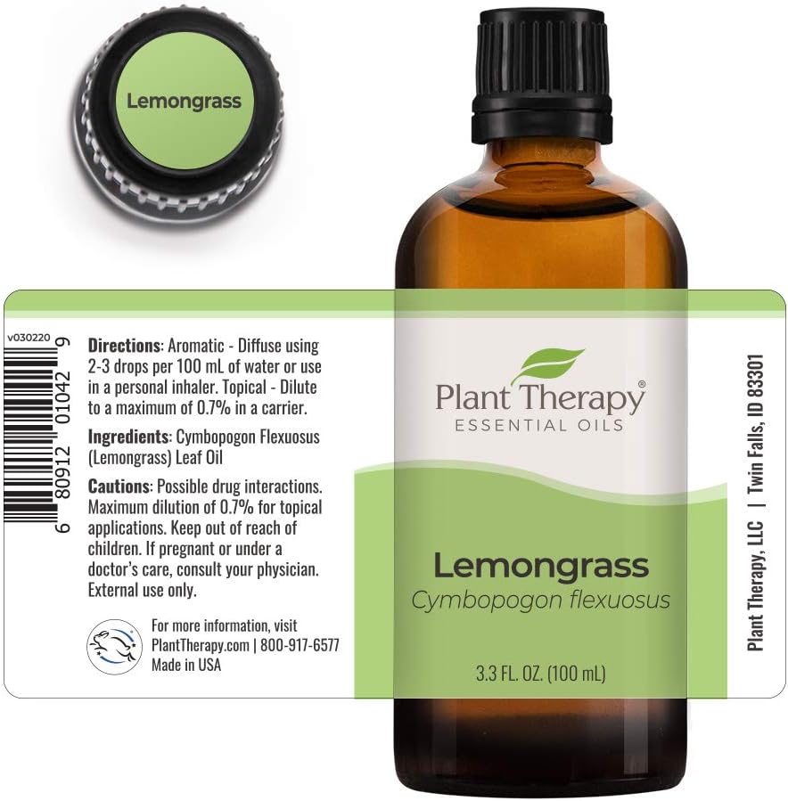 Plant Therapy Lemongrass Essential Oil 100% Pure, Undiluted, Natural Aromatherapy, Therapeutic Grade 100 Ml (3.3 Oz)