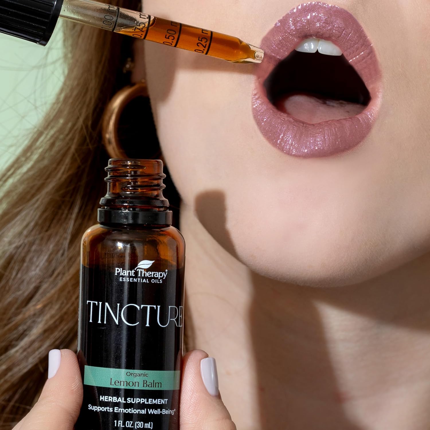 Plant Therapy Organic Lemon Balm Herbal Supplement Tincture 30 Ml (1 Oz) Encourages Emotional Balance, Helps Soothe Digestive Discomfort, Vegan, Non Gmo, Gluten Free, Liquid, 1 Bottle