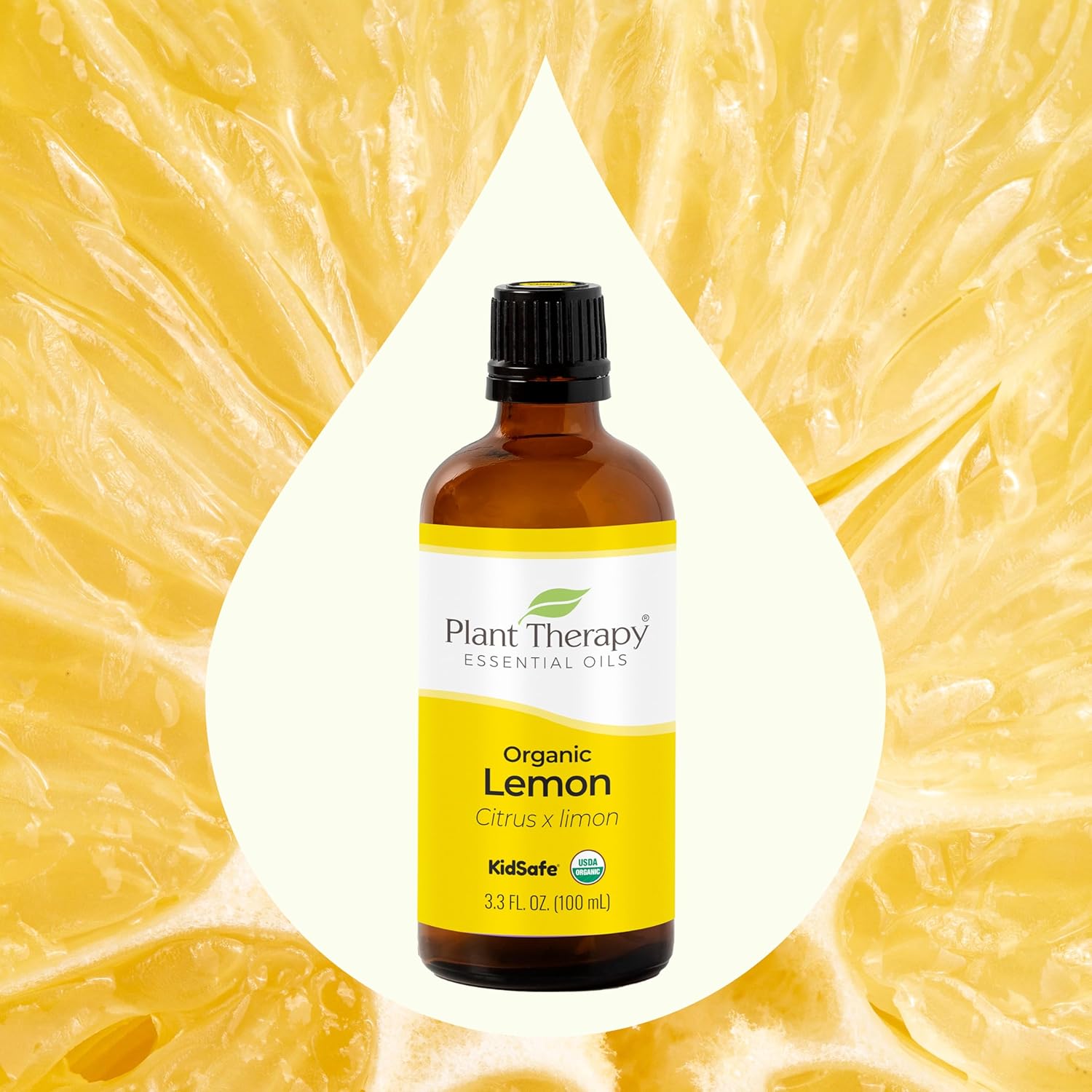 Plant Therapy Organic Lemon Essential Oil 100% Pure, Usda Certified Organic, Undiluted, Natural Aromatherapy, Therapeutic Grade 100 Ml (3.3 Oz)