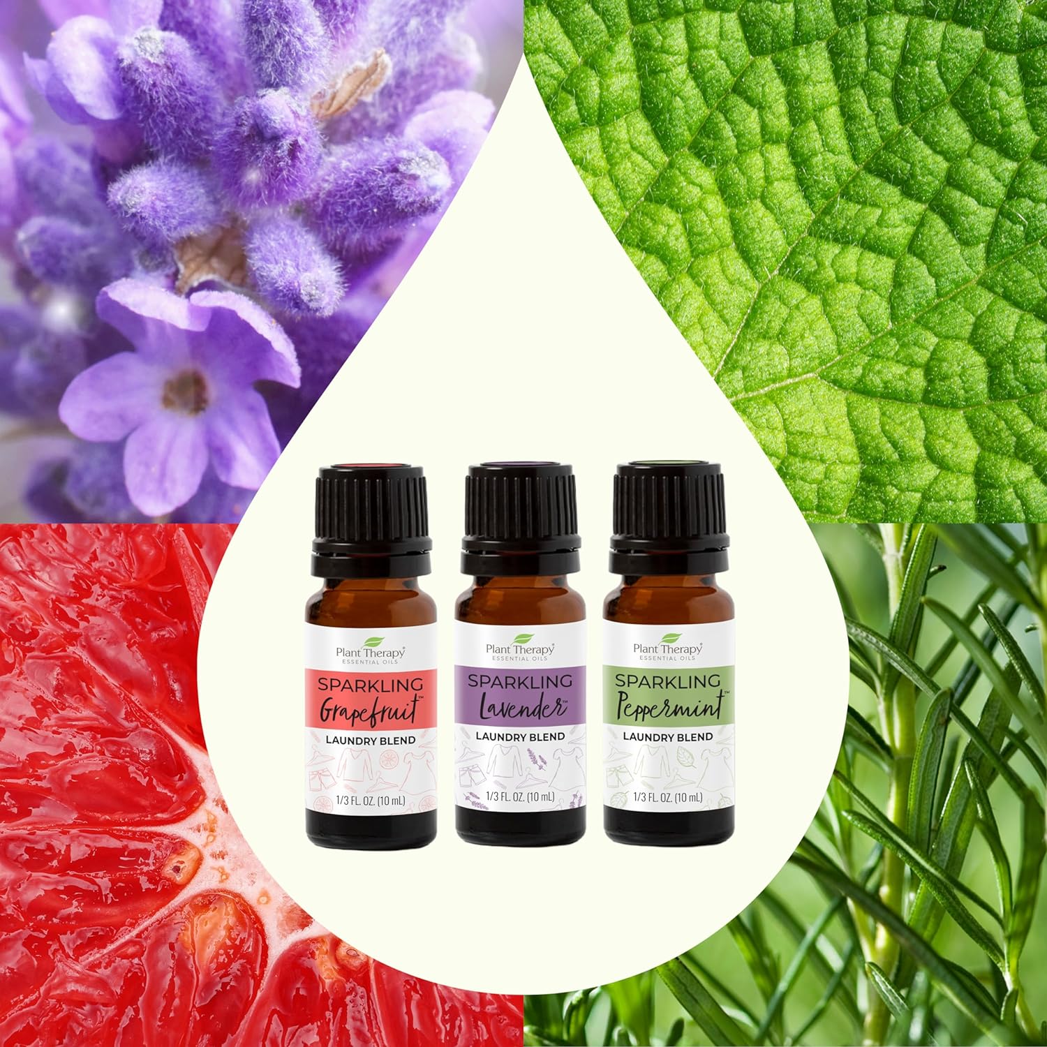 Plant Therapy Sparkling Laundry Essential Oil Blends Set Of 3, Peppermint, Grapefruit & Lavender, Pure, Undiluted, Wash Fragrance And Scent Enhancer