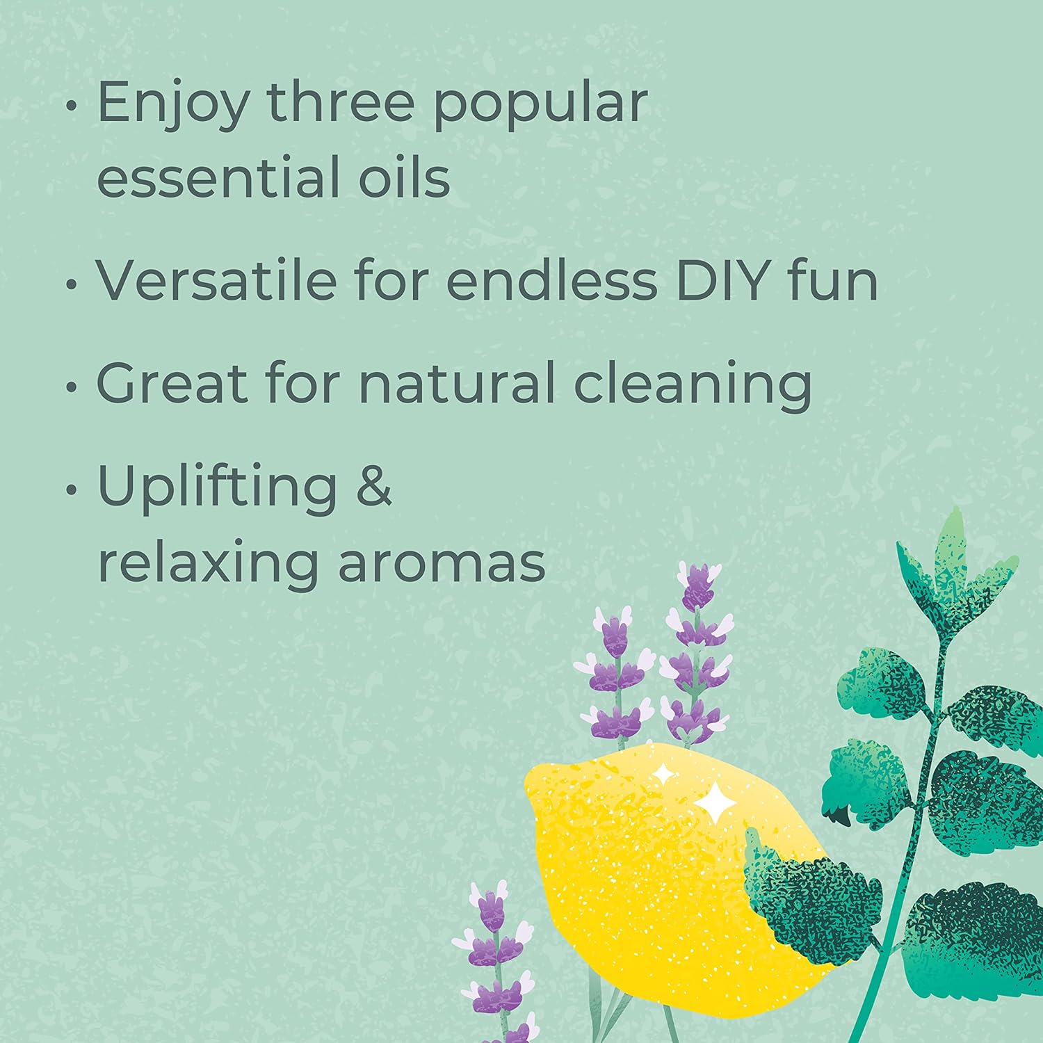 VERSATILE: Organic Lemon, Lavender, and Peppermint are some of our most popular essential oils. Use aromatically in diffuser blends, in personal inhalers, or topically in DIY skincare products. Peppermint and Lemon are also both excellent additions to DIY cleaners and Lavender is great for skin careCRISP AND CLEAN: Each of these oils have crisp, clean aromas that your family will love. Lemon and Peppermint are uplifting and energizing, Lavender is relaxing and soothing. Blend them together for a wonderfully clean smelling houseBATCH SPECIFIC THIRD-PARTY GC-MS REPORTS: Every batch of oil from Plant Therapy goes through multiple rounds of internal organoleptic testing and GC-MS testing by third-party laboratories to prove purity and quality, all available to the publicHIGH-QUALITY AFFORDABLE ESSENTIAL OILS: At Plant Therapy, our goal is to positively impact the lives of as many people as we possibly can, by selling such a high-quality product at an affordable price. Be confident knowing you are purchasing quality oils at direct-to-consumer pricesCERTIFIED AROMATHERAPISTS ON STAFF: Our customers are our #1 priority and we’d love for you to join the Plant Therapy Family. Our Certified Aromatherapists are happy to help you with all of your essential oil questions. Plus, we offer a risk-free 100% satisfaction guarantee!