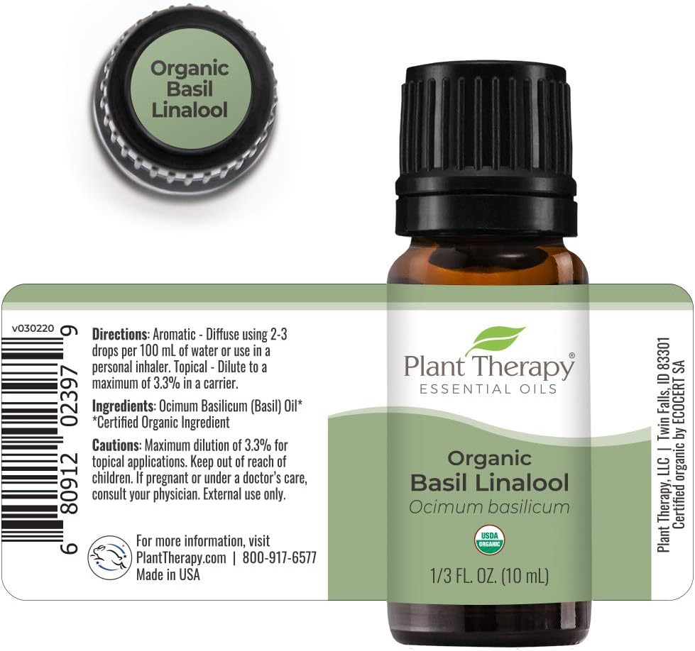 Plant Therapy Usda Certified Organic Basil Linalool Essential Oil 10 Ml (1/3 Oz) 100% Pure, Therapeutic Grade