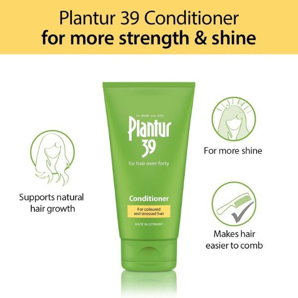 After The Age Of 40, The Hair'S Pigment Cells Can Lose Their Colour Performance And The Hair Turns Grey Or White. Women Who Use Colourants As A Result Inflict Stress On Hair And Scalp. Plantur39 Coloured & Stressed Conditioner Regenerates The Hair Surface And Increases Hair Brilliance. Active Avocado Components Make The Hair Smooth And Easy To Style