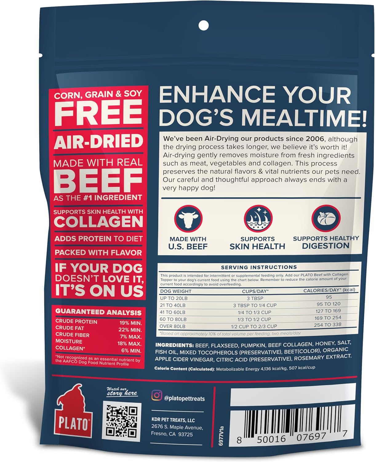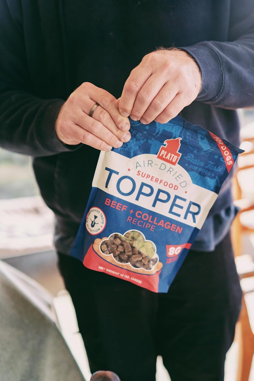 Plato Pet Treats Air Dried Dog Food Topper, Beef And Collagen Recipe, Superfood, Grain Free, Made In The Usa, 12Oz