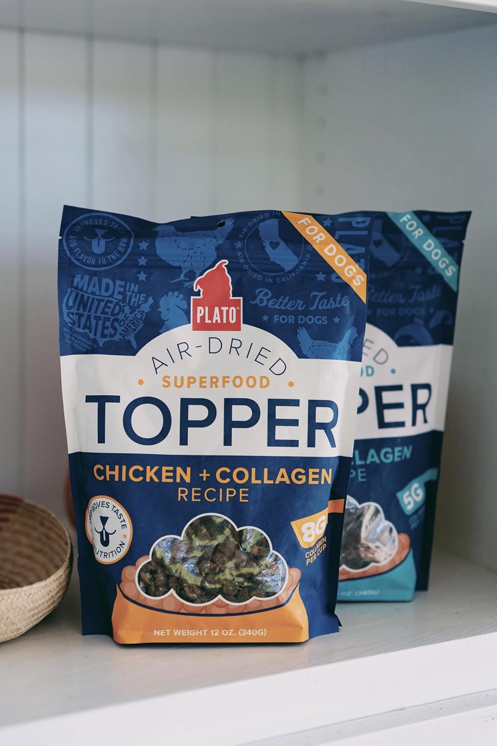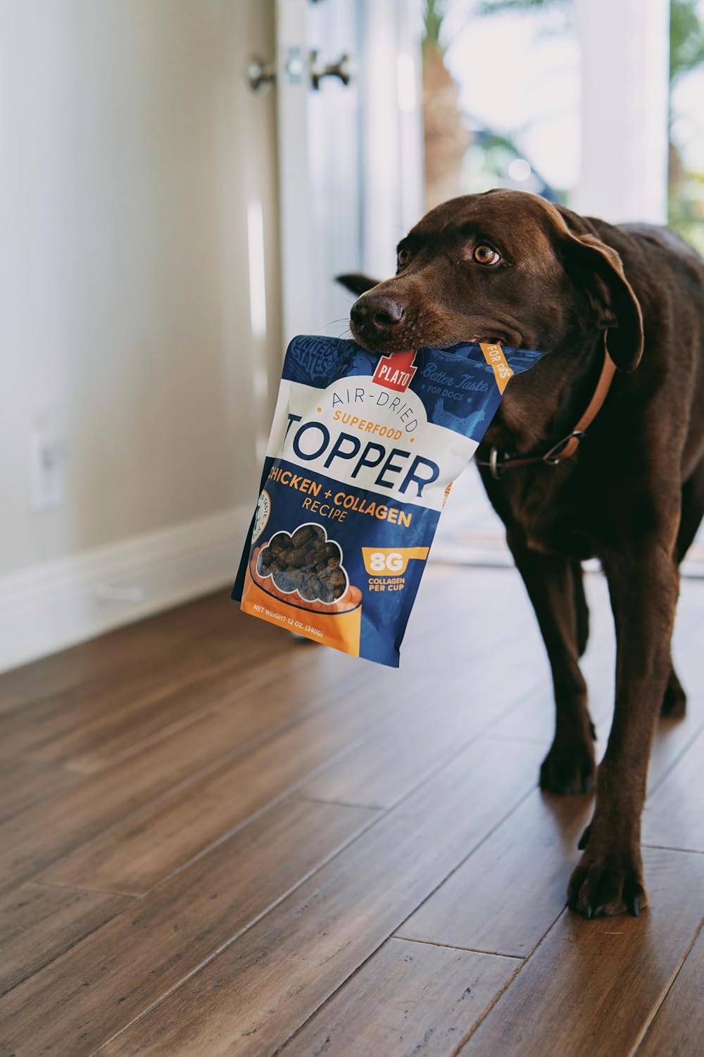 Plato Pet Treats Air Dried Dog Food Topper, Chicken And Collagen Recipe, Superfood, Grain Free, Made In The Usa, 5.5Oz