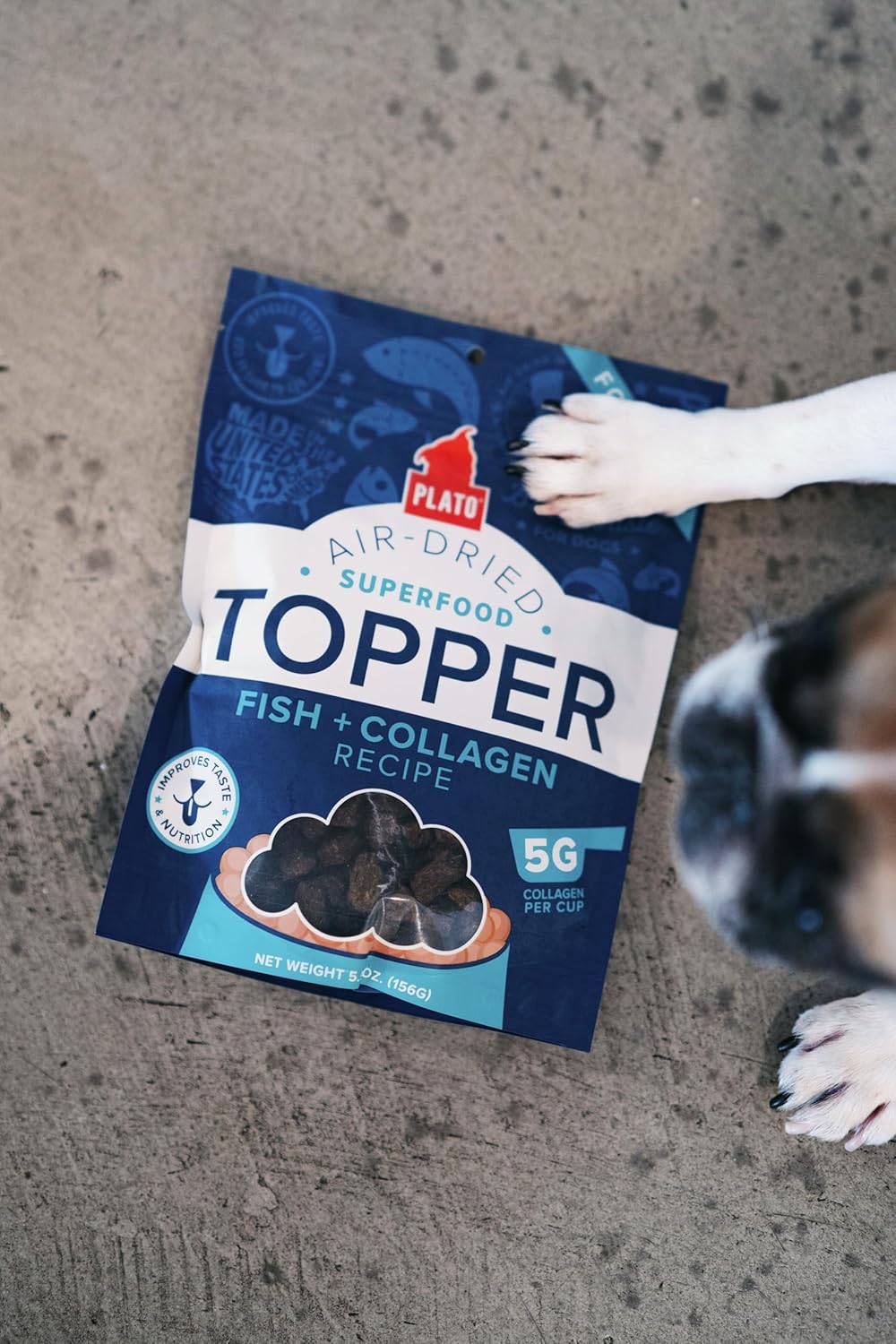 Plato Pet Treats Air Dried Dog Food Topper, Fish And Collagen Recipe, Superfood, Grain Free, Made In The Usa, 5.5Oz