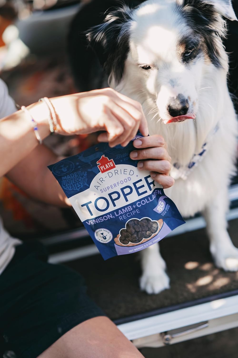 Plato Pet Treats Air Dried Dog Food Topper, Venison, Lamb And Collagen Recipe, Superfood, Grain Free, Made In The Usa, 5.5Oz