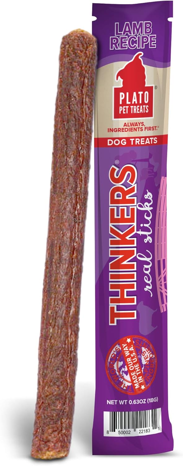 Plato Pet Treats Air Dried Dog Treats Thinkers Stick, All Natural Lamb Dog Treats, Real Meat, Made In The Usa, Single Stick, 0.63Oz