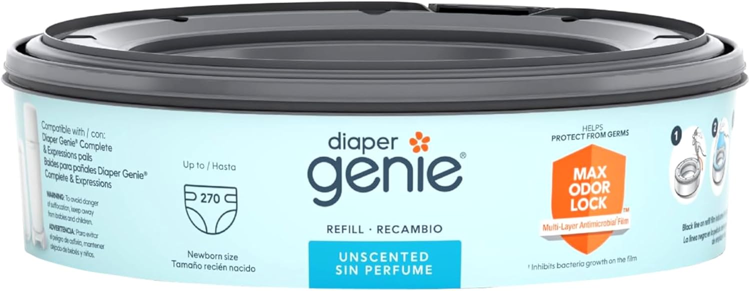 What'S The Secret To A Sweeter Smelling Nursery? The Diaper Genie-It'S Better Than An Ordinary Pail And Trash Bags At Preventing Odors. Our 7-Layer Refill Provides Barrier Technology That Locks In Odors And Germs. Diaper Genie Pails And Refills Are Made For Each Other So Don'T Trust Your Nursery To Anything Else. After All, The #1 Selling Diaper Pail Brand Deserves The #1 Selling Refill. 7-Layer Odor Protection.: Out Of Smell, Out Of Mind. The Unscented Diaper Genie Refill Bags Feature 7-Layers That Work Together To Lock In Diaper Odors. The Refill Works As A System With Either The Diaper Genie Elite Diaper Pail Or Diaper Genie Essentials. But Most Importantly, It Works With Your Lifestyle. Holds Up To 270 Newborn Diapers: Although You May Not Want To Collect Over 270 Dirty Diapers, It'S Nice To Know You Can. The Diaper Genie Refill Can Hold Up To 270 Newborn Diapers, Which Means Less Trips To The Trash Bin. You'Ll Always Know When A Diaper Genie Refill Needs Replacement -A Black Indicator Line Will Tell You When The Refills Are Almost Out. So, Keep Em' Coming, Baby
