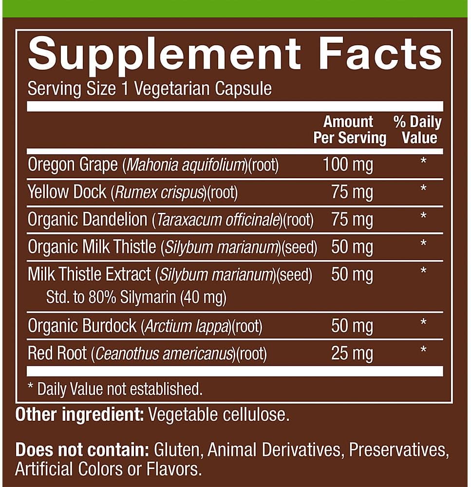 Supports liver health Non-GMO Project Verified Certified Vegan Kosher Free of gluten, dairy, soy, and nuts This Liver Support formula lends your built-in detoxifier a helping hand with a blend of botanicals like milk thistle, Oregon grape, yellow dock, dandelion, burdock, and red root to help protect your liver from free radical damage. All plntA products are made from whole food or plant-based ingredients sourced in nature, contain zero synthetic colors, sweeteners, or flavors, and are always tested to ensure purity and potency