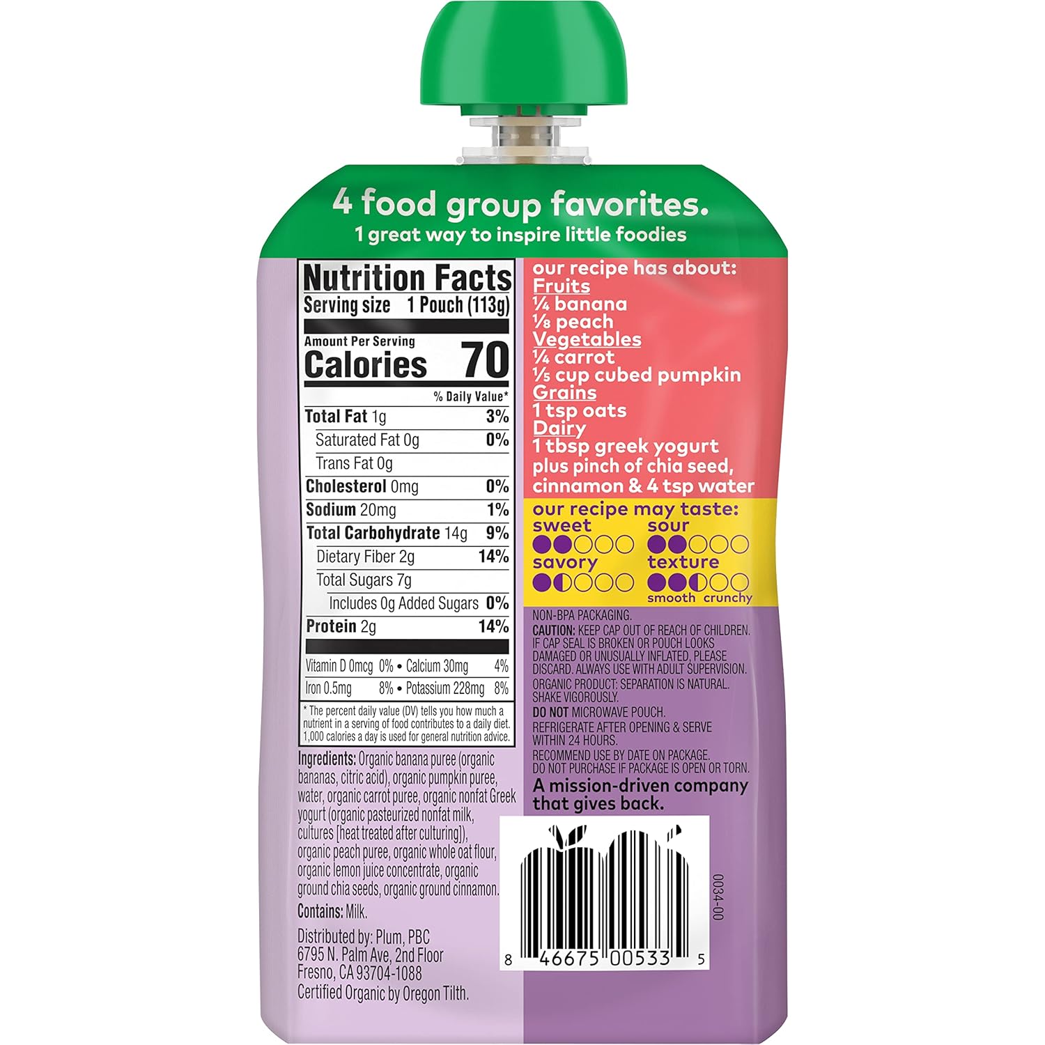 Plum Organics Mighty 4 Organic Toddler Food - Banana, Peach, Pumpkin, Carrot, Greek Yogurt, And Oat - 4 Oz Pouch (Pack Of 12) - Organic Fruit And Vegetable Toddler Food Pouch