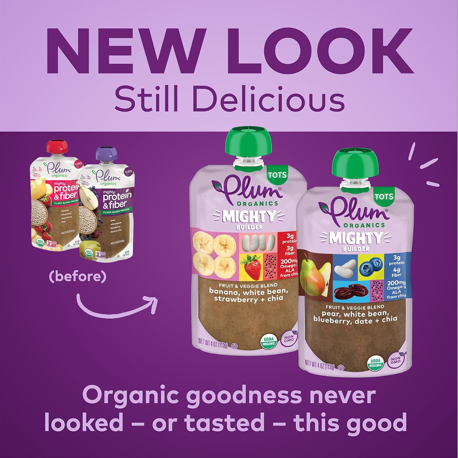 Plum Organics Mighty Builder Organic Toddler Food - Fruit And Veggie Blend Variety Pack - 4 Oz Pouch (Pack Of 24) - Organic Fruit And Vegetable Toddler Food Pouch