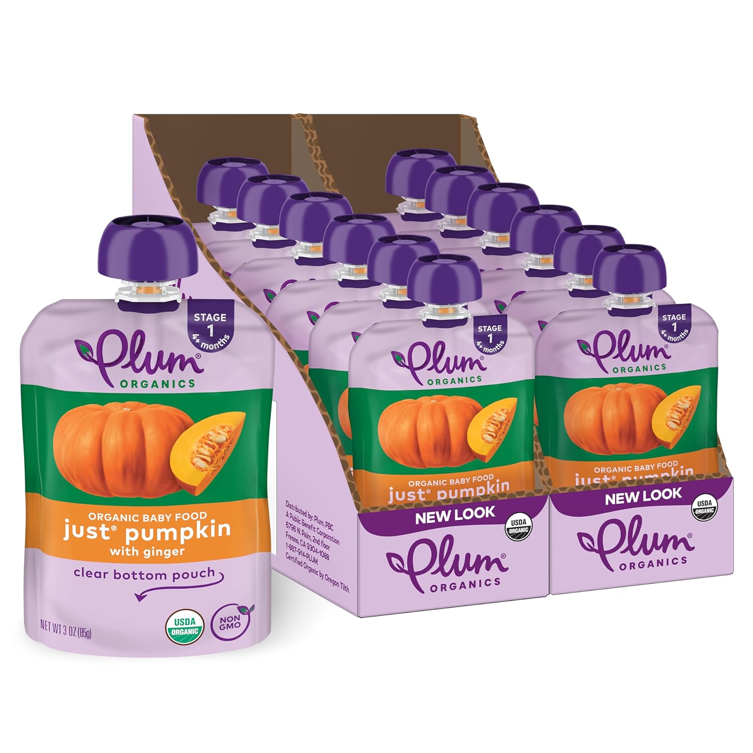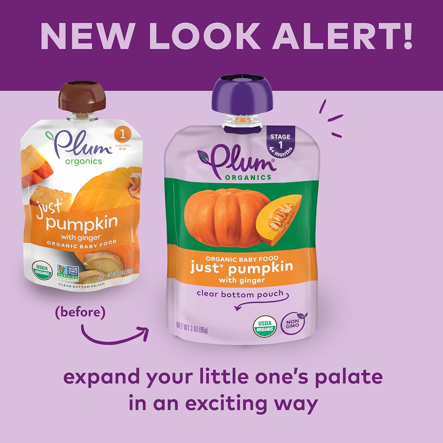 Plum Organics | Stage 1 | Organic Baby Food Meals [4+ Months] | Just Pumpkin | 3.5 Ounce Pouch (Pack Of 12) Packaging May Vary