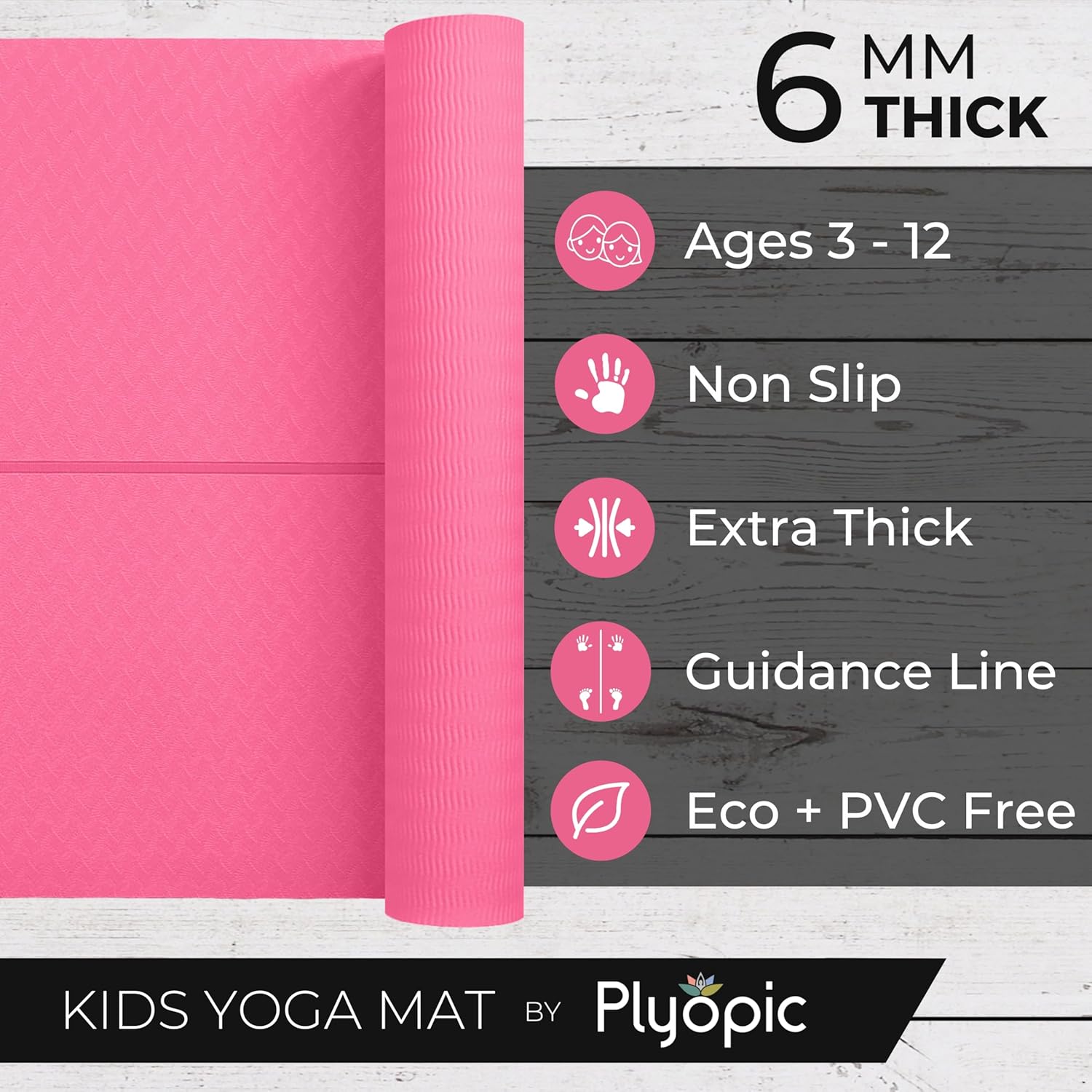 Plyopic Kids Yoga Mat - Lightweight, Non-Slip Tpe Fitness Mat - Ideal For Babies, Toddlers, Kids, Boys And Girls (0-12 Years) In Nursery, Preschool, School, Pvc Free. 6Mm Thick