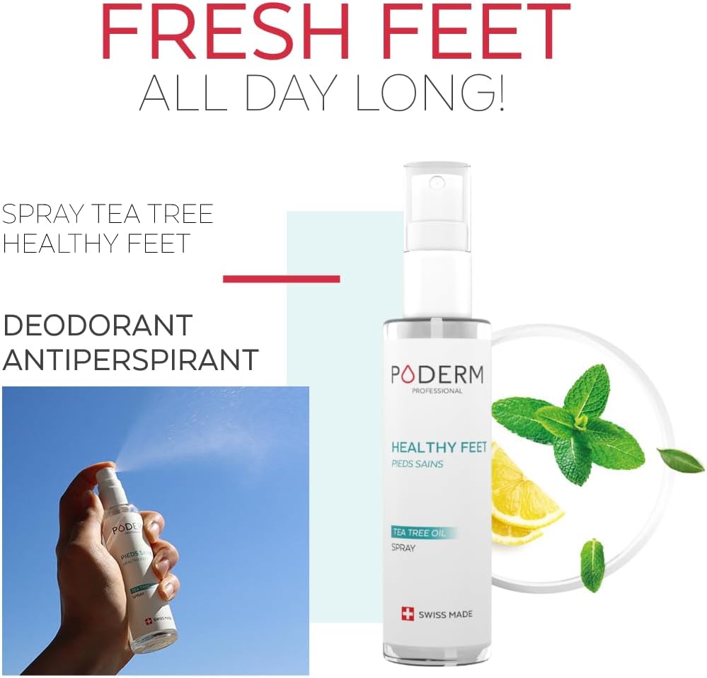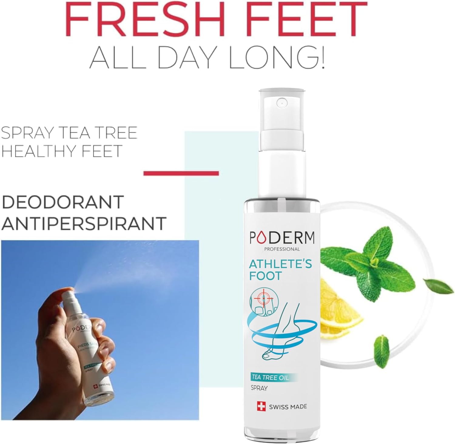 Poderm - Fungal Nail Infection Athletes Foot Spray Tea Tree 3-In-1 - Deodorising, Anti-Transpiration, And Purifying - Eliminates 99.9% Of Fungal Infections - Treatment For Feet - Swiss Made