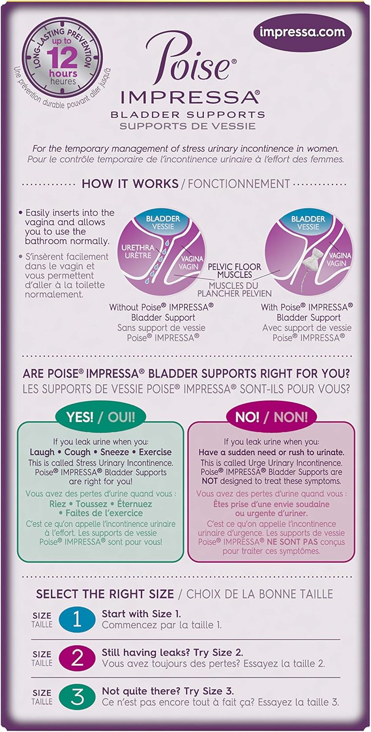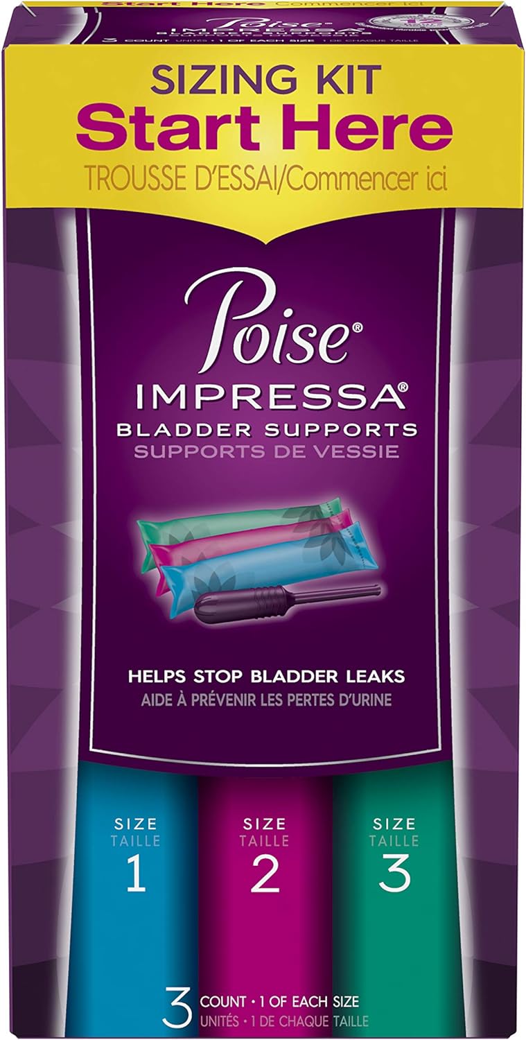 Poise Impressa Incontinence Bladder Supports For Bladder Control Sizing Kit, 3 Count, Packaging May Vary
