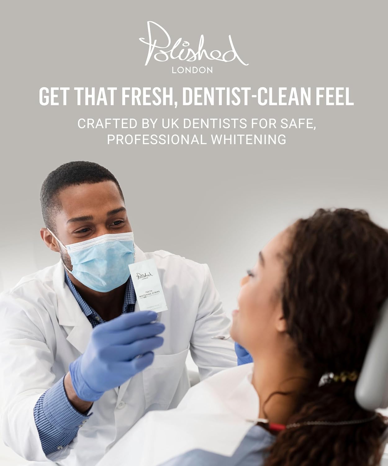 Polished London Teeth Whitening Strips - Whitening Strips For Sensitive Teeth - Enamel-Safe, No Residue, Peroxide Free Stain Remover- Premium Kit With Shade Guide, 14-Day Plan