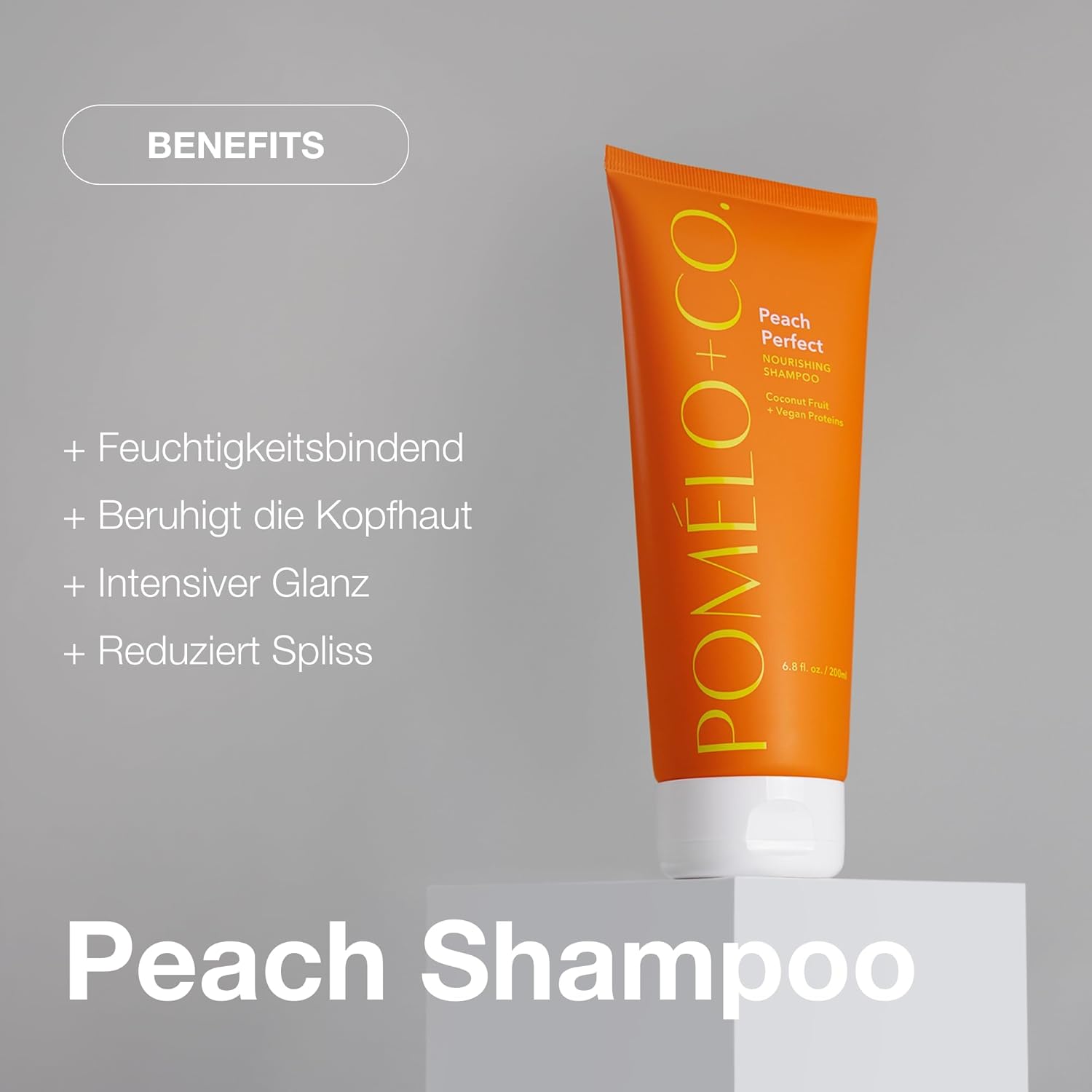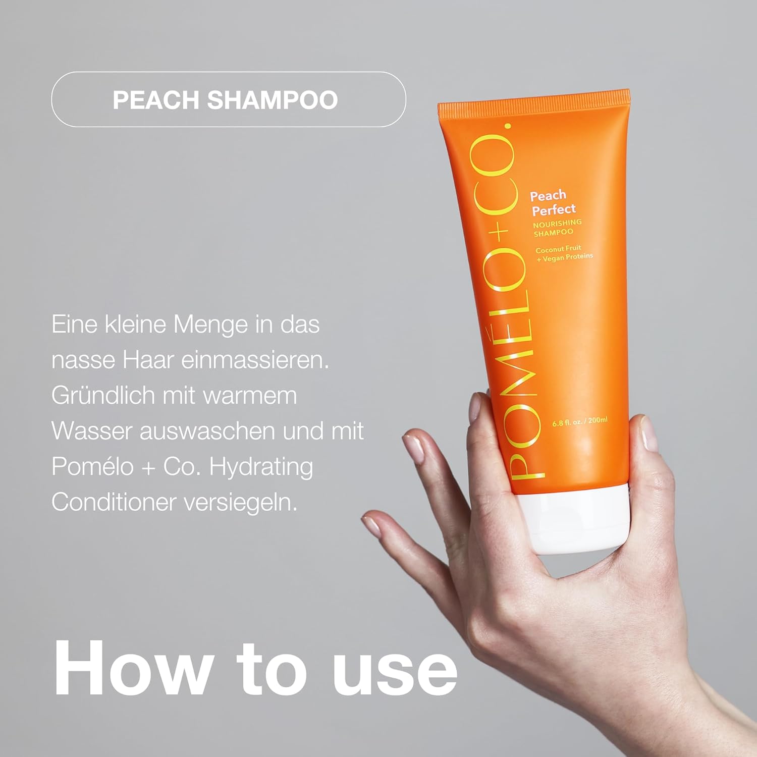 Pomélo+Co. Peach Perfect Shampoo - Moisturising Hair Care For Dry Hair - Vegan Hair Shampoo With Nourishing Ingredients - 200Ml