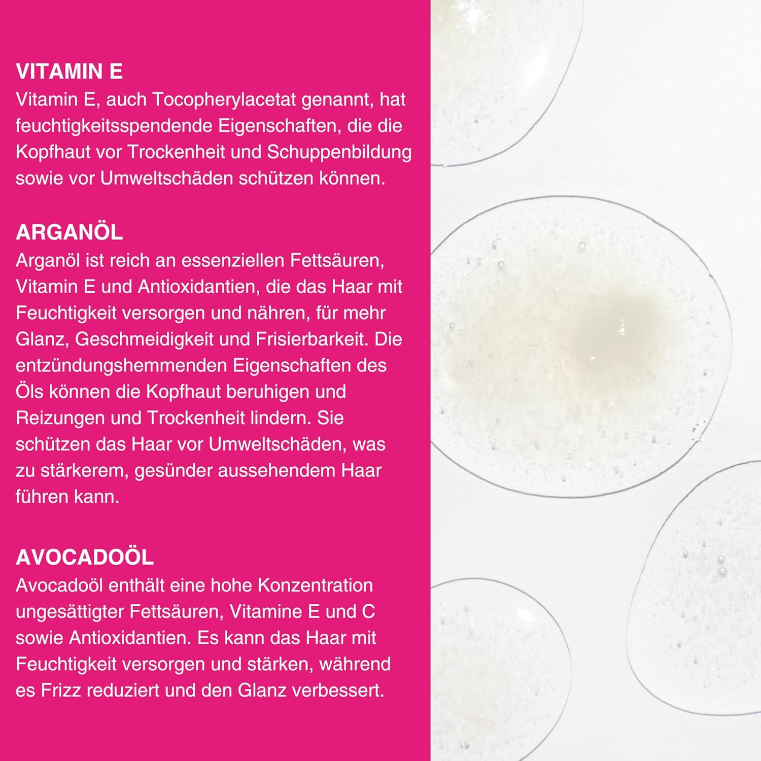 Ingredient 1 - Vitamin E has moisturizing properties that can prevent dryness and flaking of the scalp. The antioxidant properties of tocopheryl acetate also play a role in protecting the scalp from environmental damage, helping to maintain the overall well-being of the scalp and hair