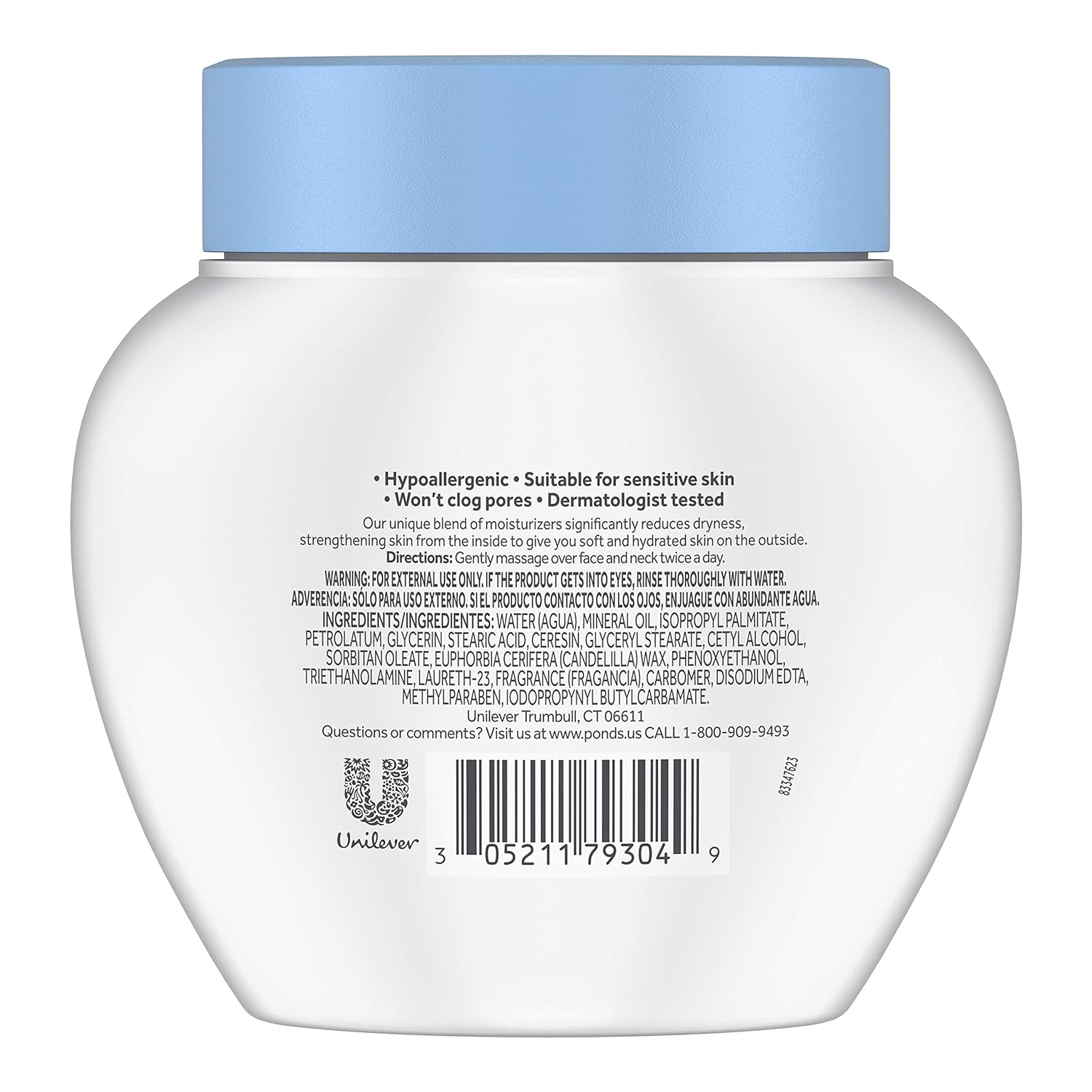 Product Description Give Your Skin The Luxurious Hydration It Craves With Pond'S Dry Face Cream. Our Carefully Crafted Formula Is A True Treat For Your Skin, Providing Both Soothing Relief And Deep Hydration To Create The Perfect Canvas For Flawless Makeup Application. Say Goodbye To Dryness And Hello To Irresistibly Silky Soft Skin! We Understand That Sensitive Skin Needs A Little Extra Tlc, Which Is Why Our Face Cream Is Hypoallergenic And Specially Designed To Be Extra Gentle. This Rich, Creamy Formula Is Easily Absorbed, Locking In Moisture To Deeply Hydrate And Significantly Reduce Dryness. Our Unique Blend Of Essential Ingredients, Including Occlusives To Prevent Moisture Loss And Humectants To Deeply Hydrate And Retain Moisture, Revitalizes Your Skin From Within. The Result A Replenished, Rejuvenated Complexion That'S Irresistibly Touchable. This Deeply Hydrating Face Moisturizer Is The Perfect Base For Your Morning Makeup Routine, And As A Night Cream, It Locks In Moisture After Cleansing. Join The Ranks Of Skincare Enthusiasts Who Have Embraced The Magic Of This Timeless Classic. Pond'S Skin Care Products Have Been Beloved Favorites For Generations, Delivering Soft, Smooth, And Radiant Skin To Those Who Seek The Best For Over 170 Years. Experience The Difference And Indulge In The Ultimate Skincare Treat! Amazon.Com Rediscover Pond'S Classics Dry Skin Cream Time-Tested By Generations Of Beautiful Women, Pond'S Classics, Such As Cold Cream Cleanser And Dry Skin Cream, Will Show You How Easy Beautiful Skin Can Be. Pond'S Philosophy Uncomplicated Skincare These Days, Getting The Right Face Care Can Seem Daunting. The Good News Is Beautiful Skin Doesn'T Have To Be Hard, Involve Hefty Price Tags, Empty Promises, Or Complicated, Time-Consuming Routines. Beautiful Skin Can Be Easy To Achieve, And Affordable. Original Fresh Towelettes Were The First To Make Removing Dirt, Makeup And Impurities With One Simple Swipe. Time-Tested Since 1846 Our Product Formulas Are Time-Tested And Convenient To Use. A Classic Beauty Essential For Over 100 Years, Our Cold Cream Cleanser Combines Gentle Deep Cleansing With Moisture That Stays Locked In. Dry Skin Cream Is A Rich Moisturizer That Is Quickly Absorbed Into The Skin And It Provides Essential Hydration For Dry Skin. More Relevant Than Ever With Today'S Women Busy Balancing Work, Family And Everything Else That Comes Their Way, Pond'S Wants To Help Simplify Life By Simplifying Skin Care, With Beautiful Results Every Time. Classically Beautiful We Believe Skin Care Doesn'T Need To Be Complicated, Time-Consuming Or Expensive. Rediscover Pond'S Products And Experience The Beauty Of Classic Skin Care. Explore Pond'S Product Gallery Classic Cream Towelettes Luminous Favorites From Mexico