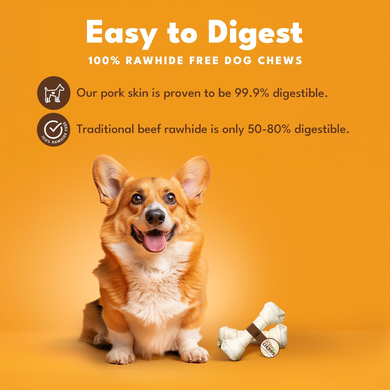 Easy To Digest - Our Pork Skin Is High Protein, High Collagen, & Proven To Be 99.9% Digestible (Traditional Beef Rawhide Is Only 50-80% Digestible)
