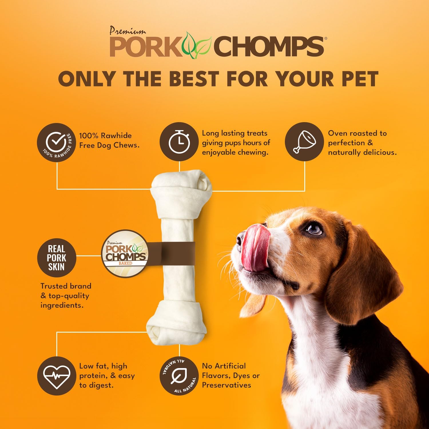 100% Rawhide Free Dog Chews - Pork Chomps Oven Baked Pork Skin Knotted Bones Are Long Lasting, Low Fat, & Naturally Delicious