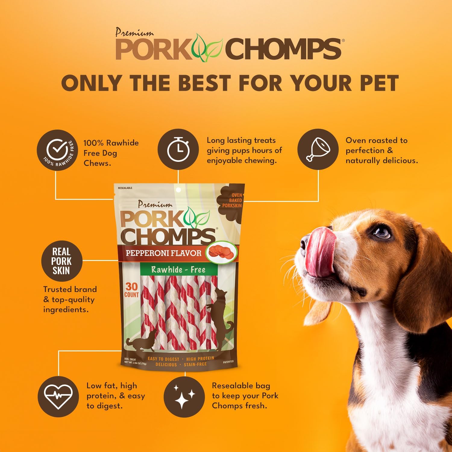 Only The Best For Your Pet - Pork Chomps Uses A Patented Process To Remove 70% Of The Pork'S Fat To Create A Low-Fat, Cleaner And Healthier Dog Chew