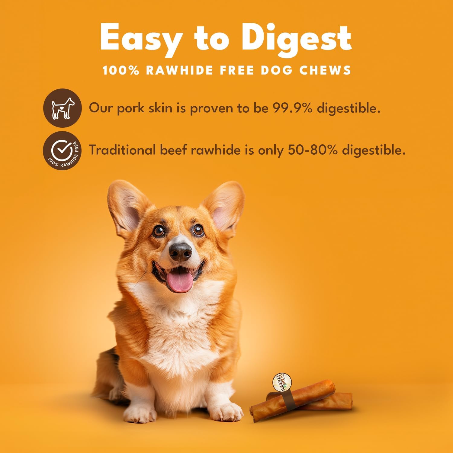 Easy To Digest - Our Pork Skin Is High Protein, High Collagen, & Proven To Be 99.9% Digestible (Traditional Beef Rawhide Is Only 50-80% Digestible)