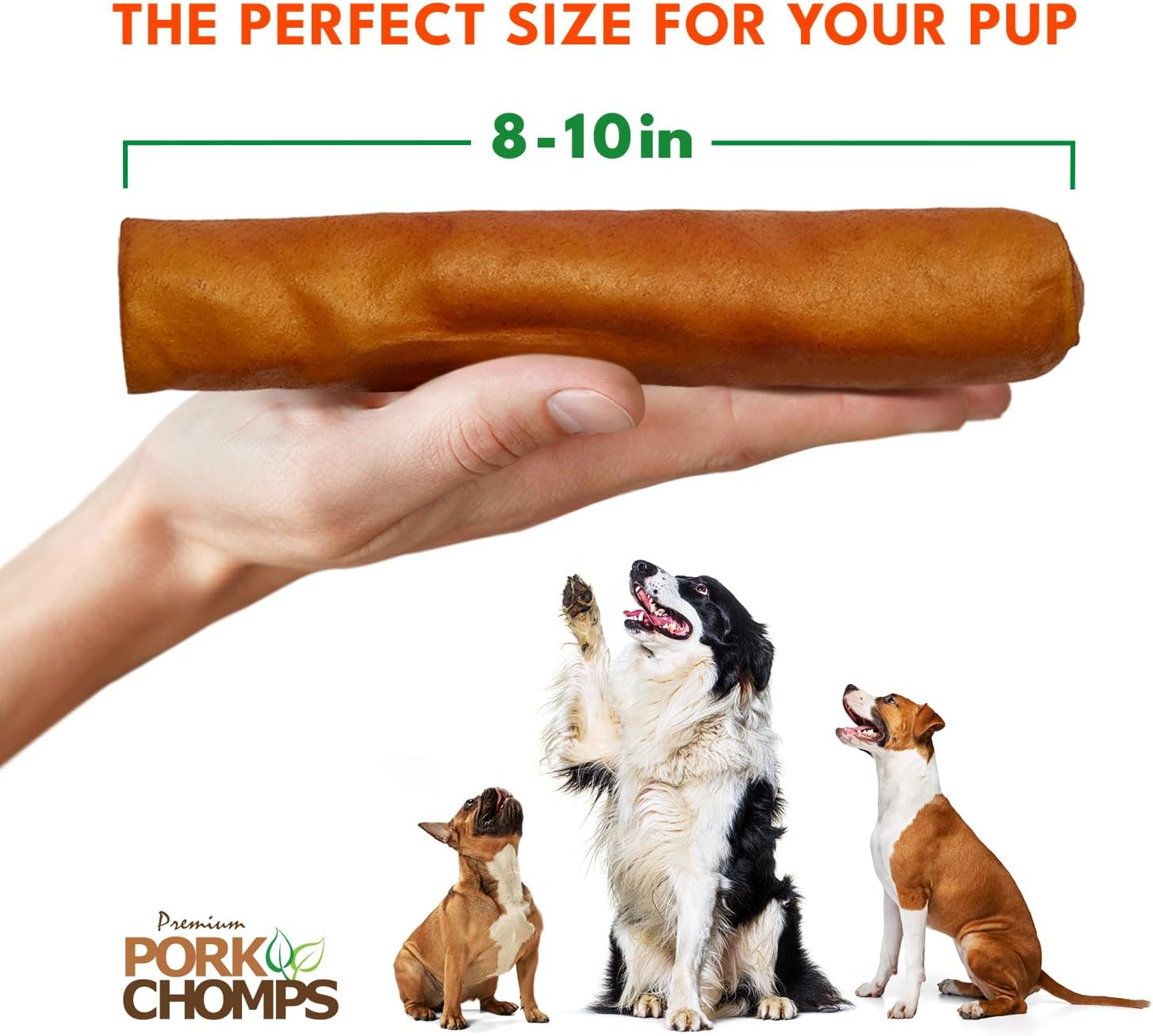 Perfect For Small, Medium & Big Dogs - Dogs Of All Sizes Love Our Pork Chomps. Recommended Size Is Slightly Larger Than Your Pet’S Mouth