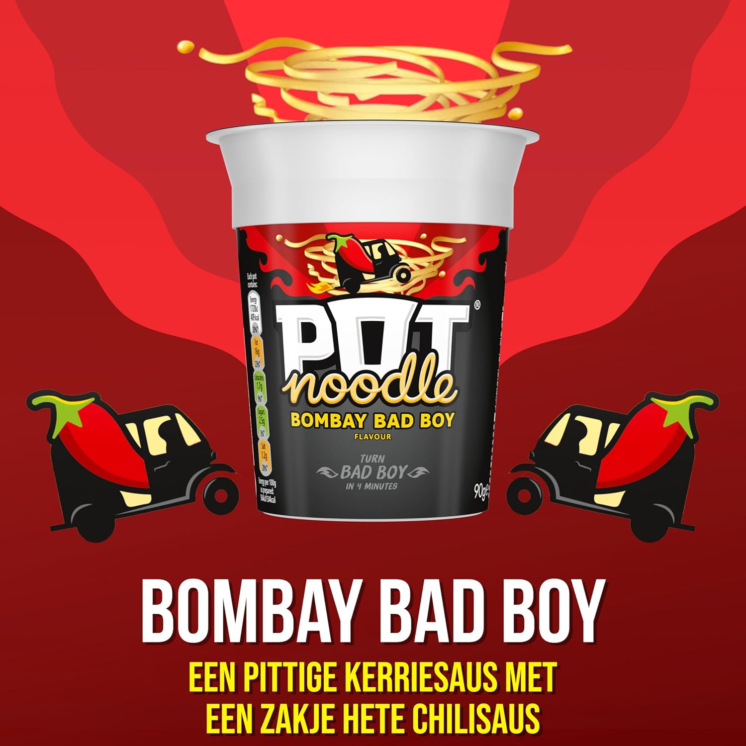 Pot Noodle Bombay Bad Boy Standard Pot Instant Vegan* Snack Quick To Make Noodles 90 G