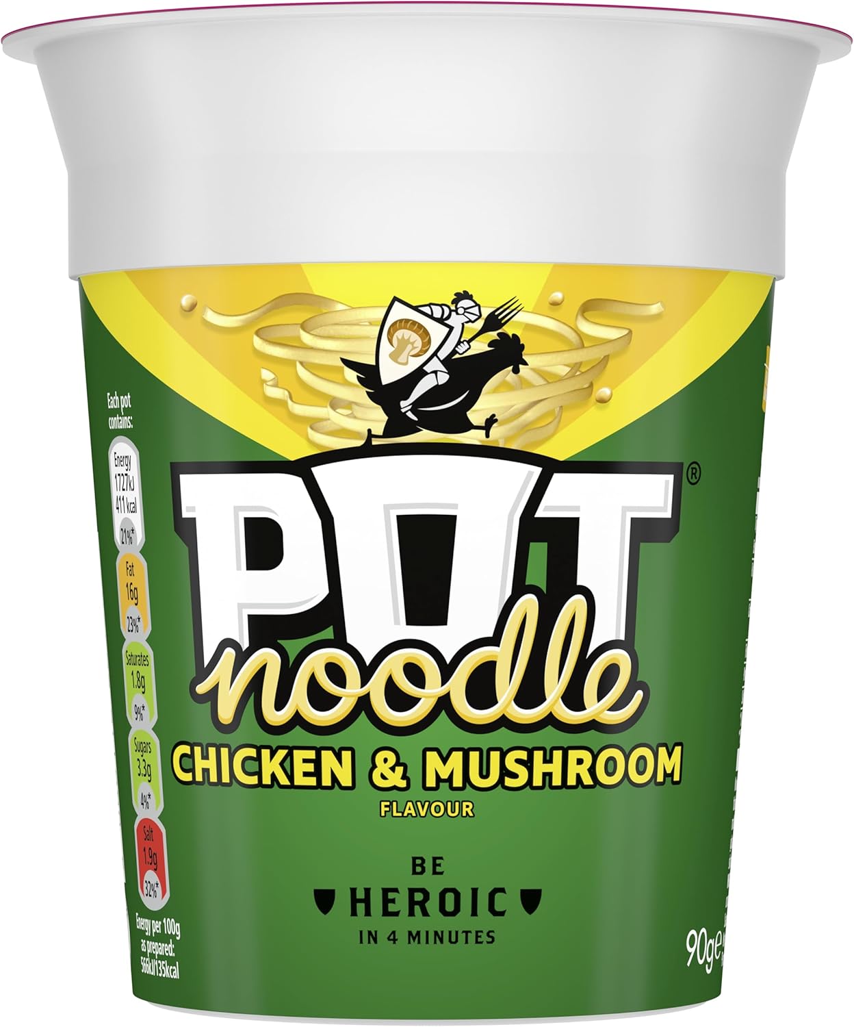 Pot Noodle Chicken & Mushroom Standard Pot Noodle Instant Vegetarian Snack Quick To Make Noodles 12X 90 G