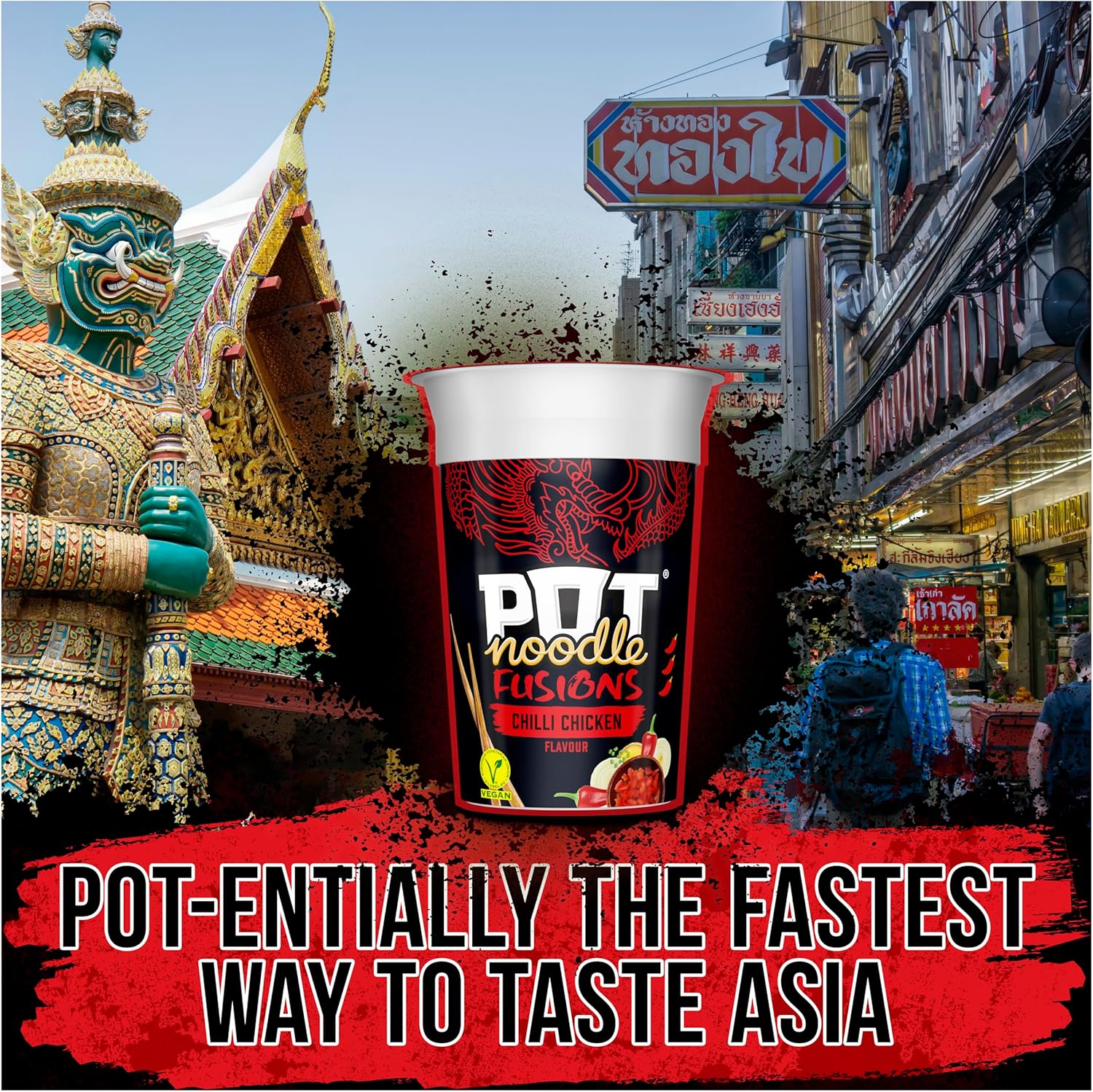Pot Noodle Fusions Chilli Chicken Instant Snack Vegan Quick To Make Noodles 8X 100 G