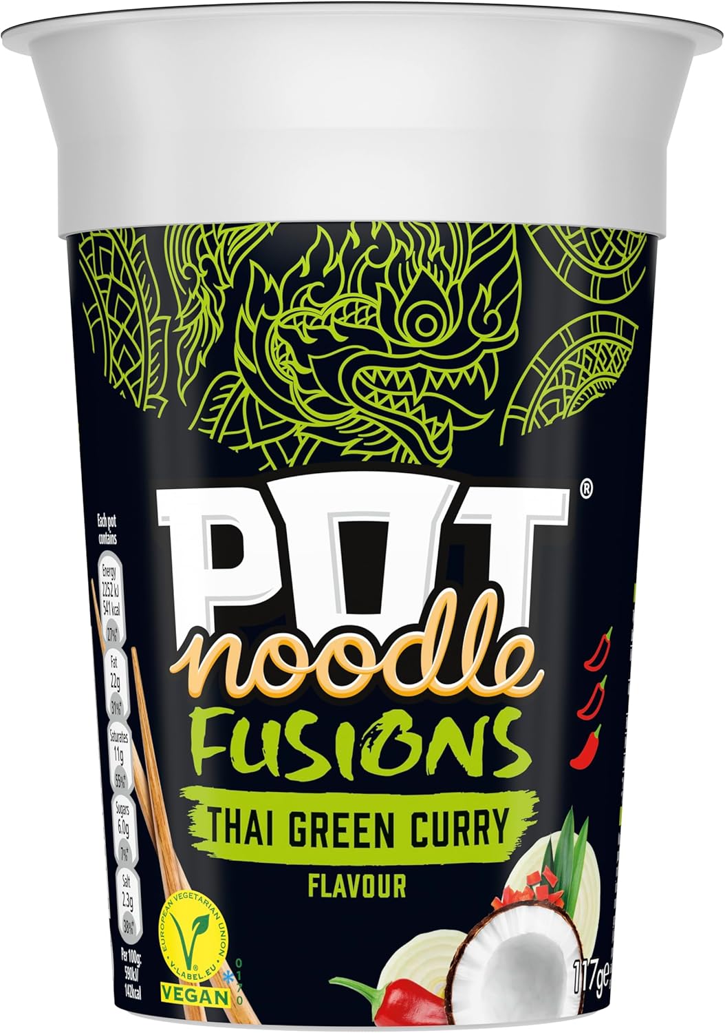Pot Noodle Fusions Thai Green Curry Instant Snack Vegan Quick To Make Snack Pot 8X 117 G