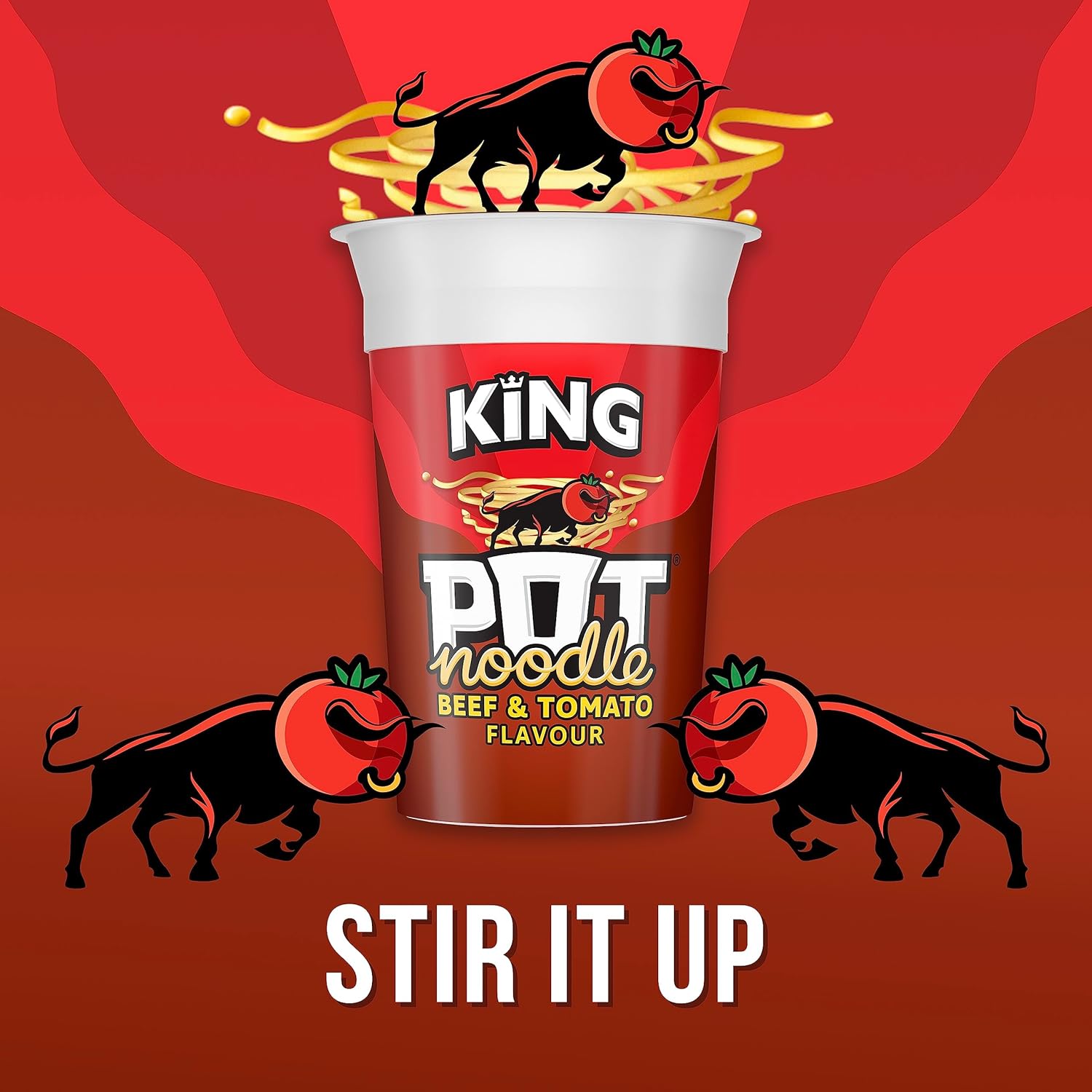 Pot Noodle King Pot Noodle Instant Vegetarian Snack Quick-To-Make Noodles , Beef & Tomato Flavour 12X 114 G