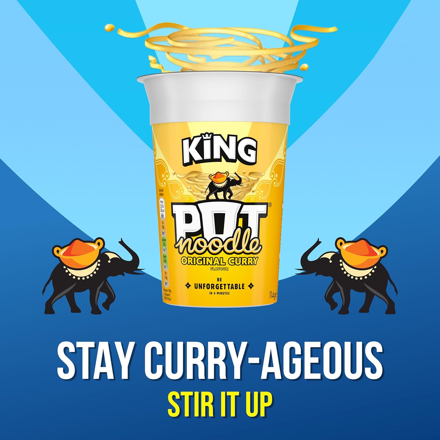 Pot Noodle Original Curry King Pot Noodle Instant Vegetarian Snack Quick To Make Noodles 12X 114 G