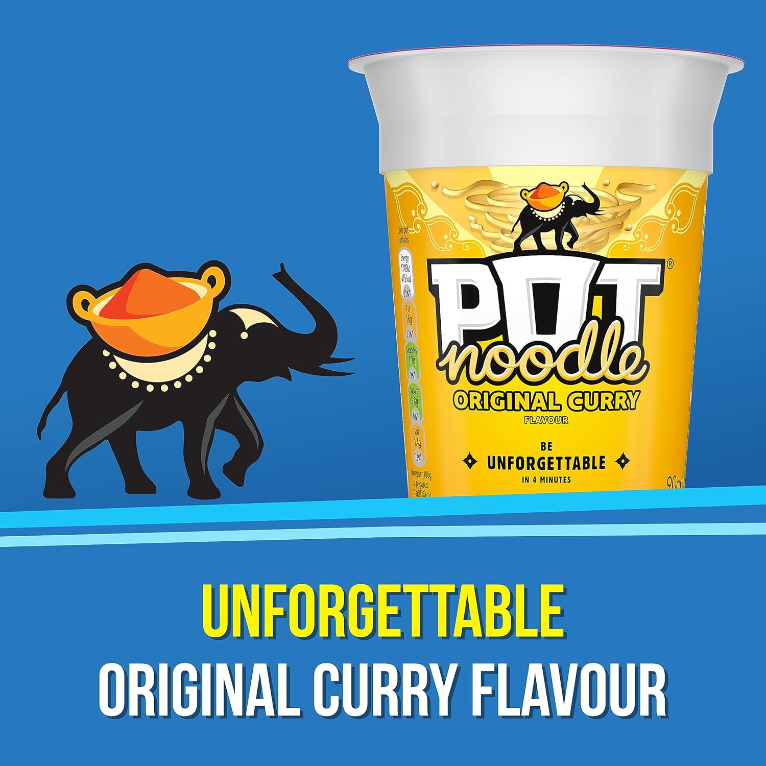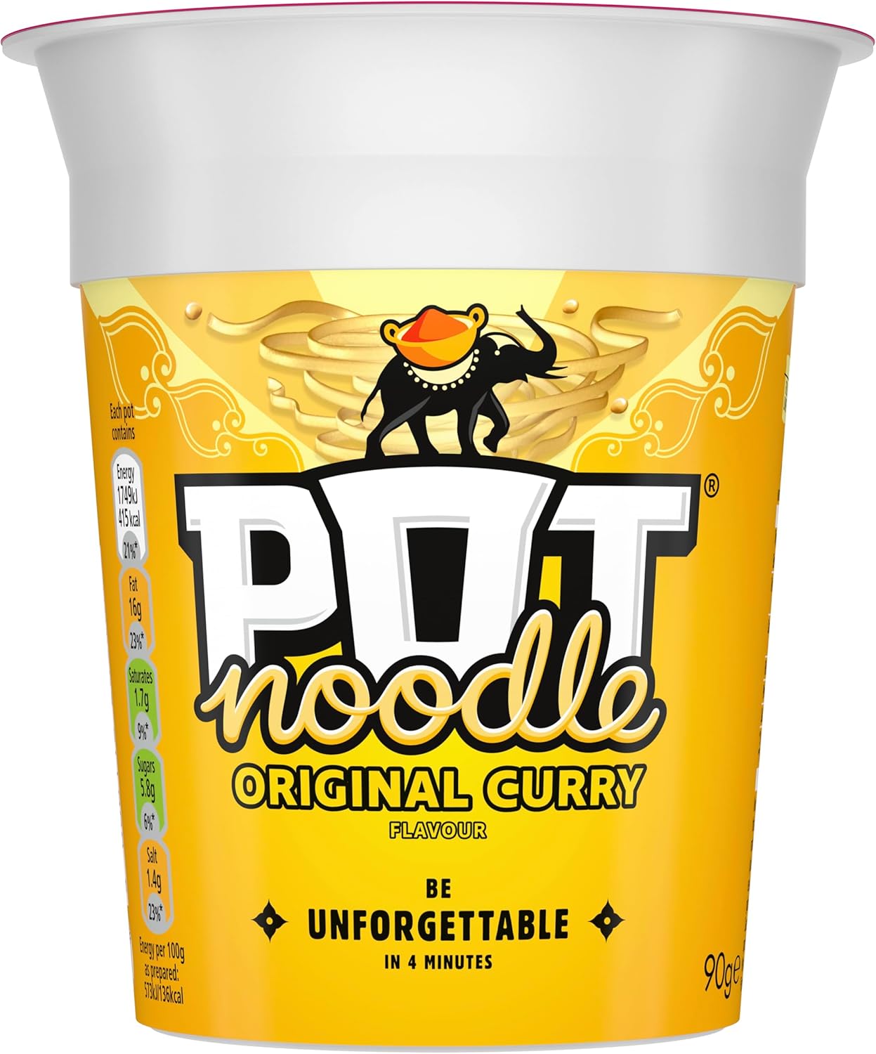 Pot Noodle Original Curry Standard Pot Instant Vegetarian Snack Quick To Make Noodles 12X 90 G