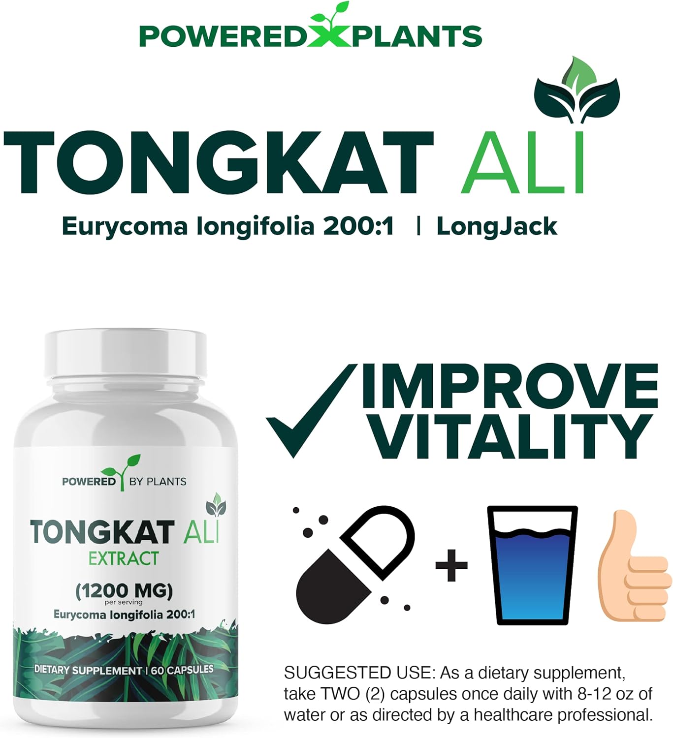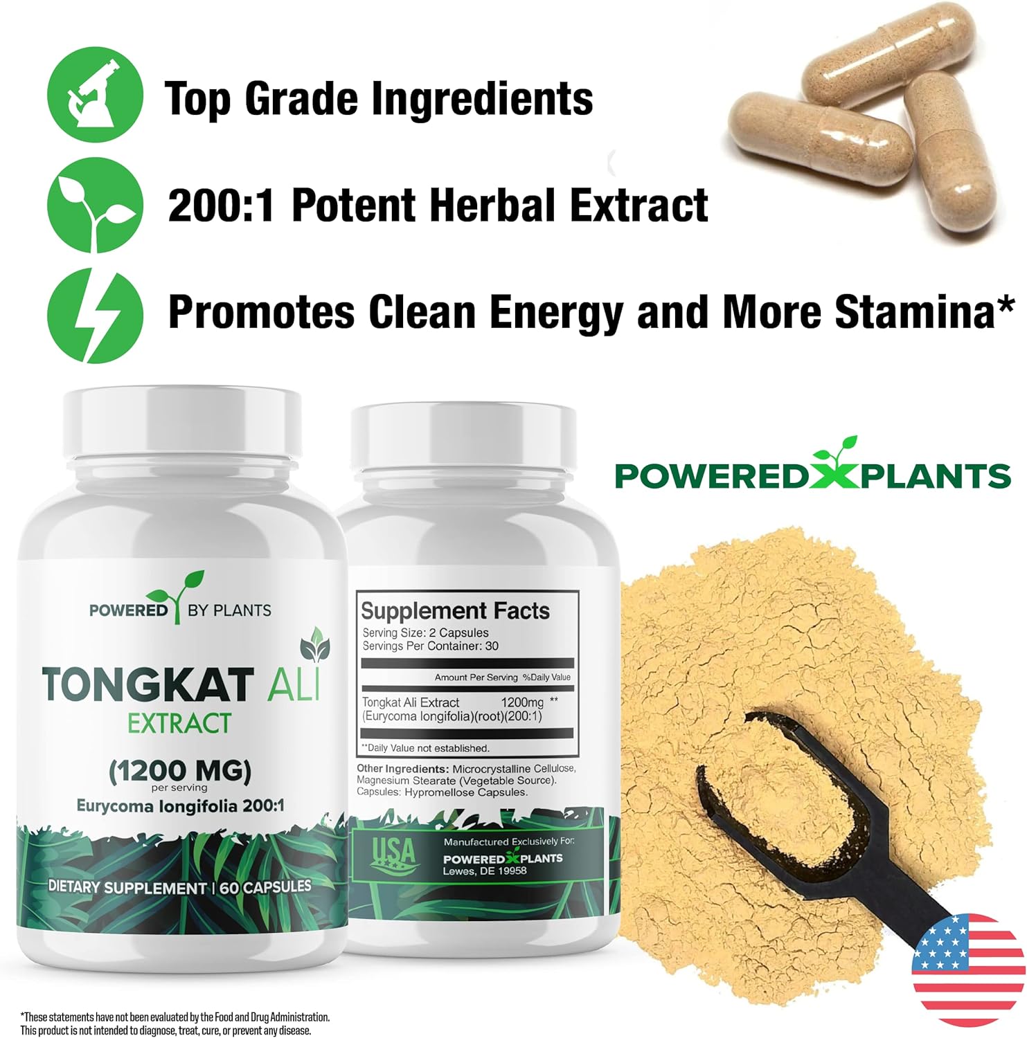 Powered X Plants Tongkat Ali Extract 200:1 For Men (Longjack) Eurycoma Longifolia 1200Mg - Men'S Health Support, Herbal Male Performance Supplement For Stamina And Drive By Pxp