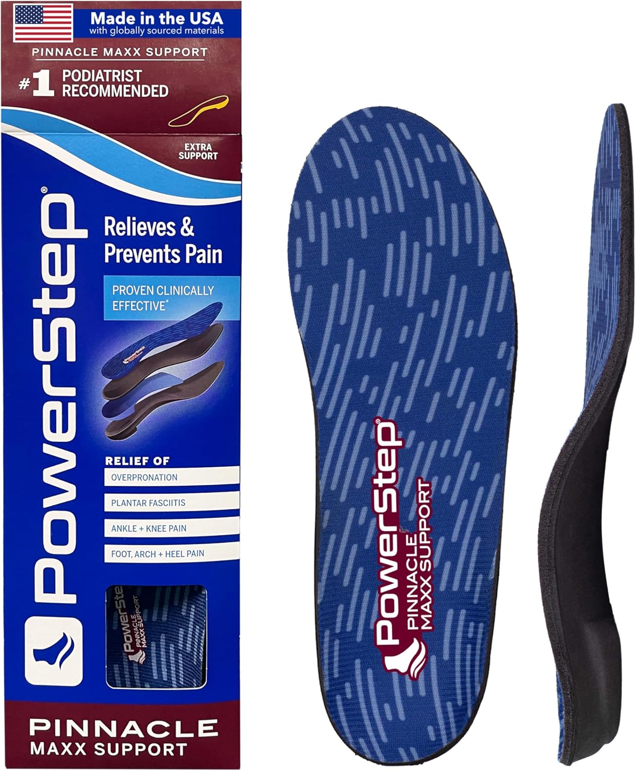 PowerStep Pinnacle Maxx Orthotic Insoles - Orthotics for Overpronation with Maximum Stability & Comfort - Firm + Flexible Angled Heel Style to Help Flat Feet - Heavy Duty Inserts