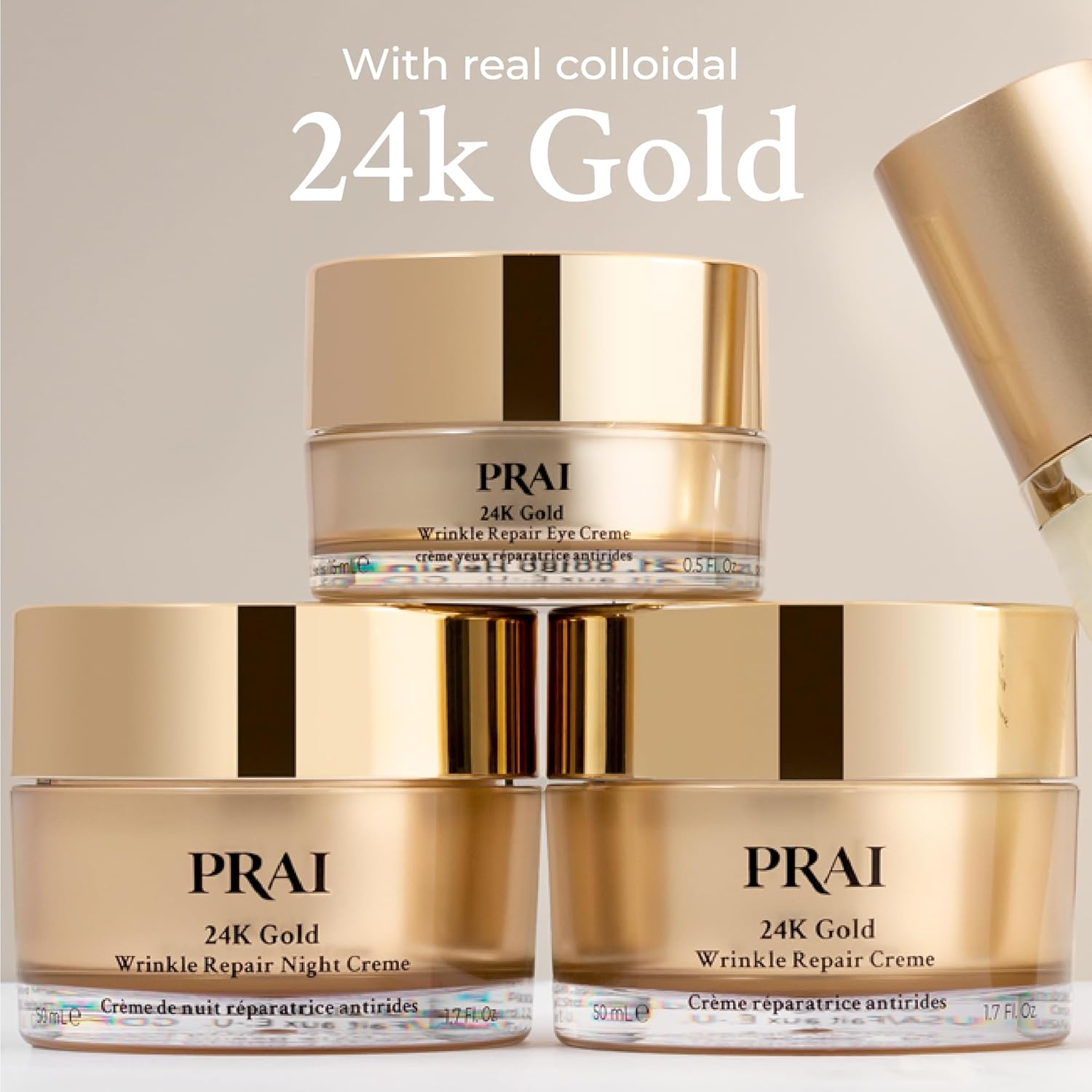 Prai 24K Gold Caviar Wrinkle Repair Creme 50Ml - Intensive Real 24K Gold - Advanced Anti-Ageing Anti-Wrinkle Skincare - Hydrates, Firms, Brightens Skin - With Hyaluronic Acid, Peptides & Sunflower Oil