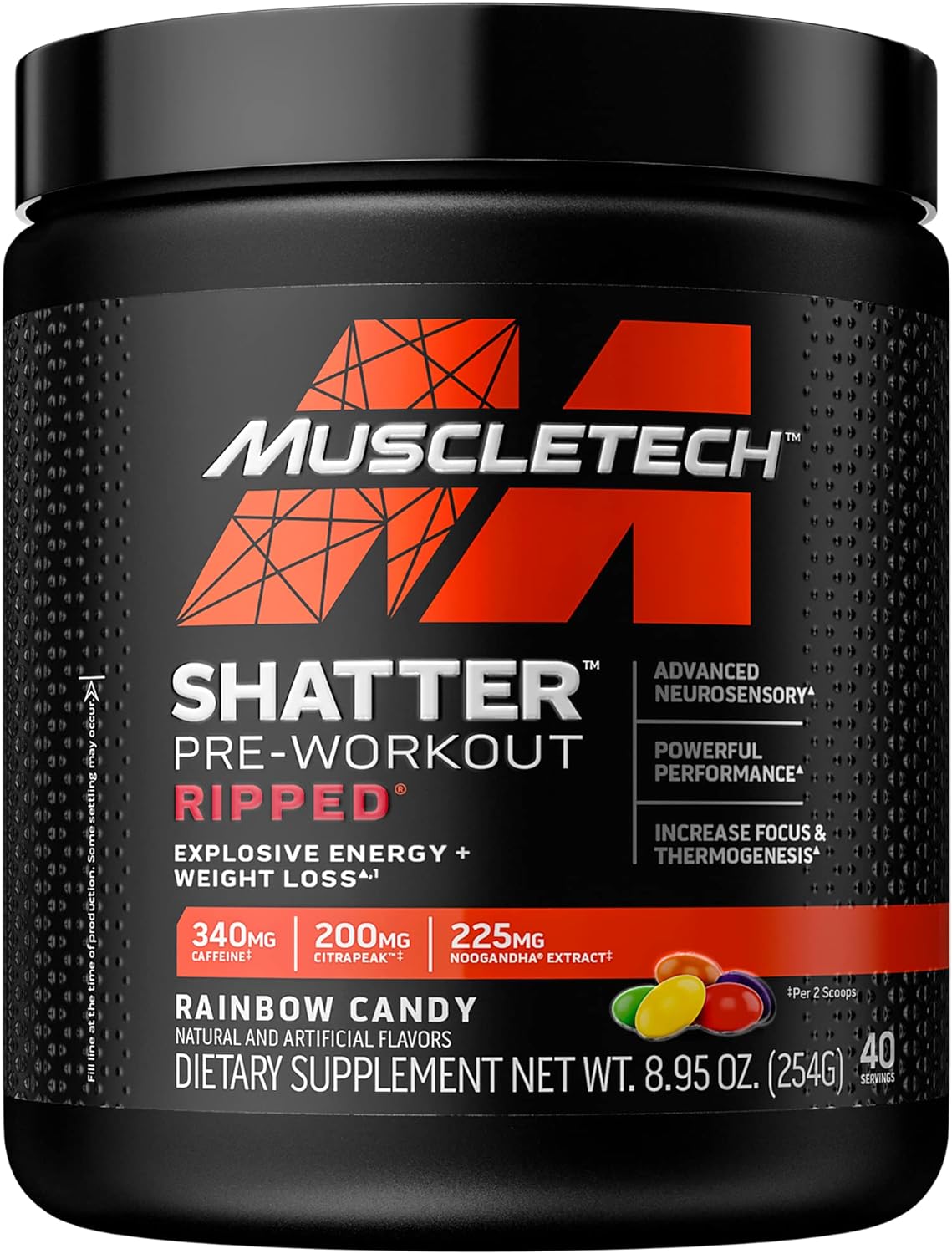 DESCRIPTION : Pre Workout + Weight Loss MuscleTech Shatter Ripped Pre-Workout Pre Workout for Men & Women PreWorkout Energy Powder Drink Mix Energy + Weight Loss Formula Rainbow Candy (40 Servings)