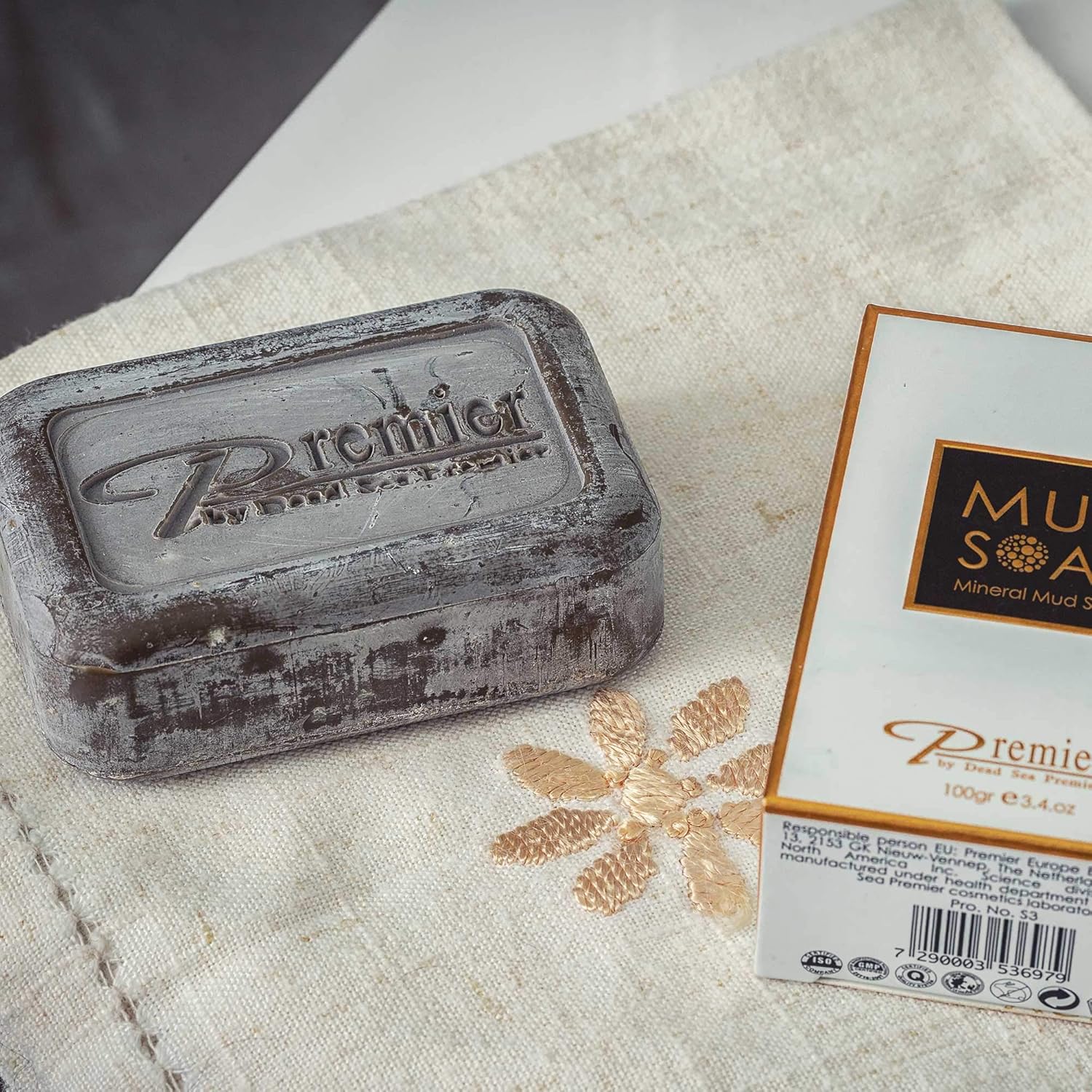 ORIGINAL Dead Sea mud soap bar with Dead Sea salt minerals and witch hazel extract is finely filtered at the source- the Dead Sea and is designed, tested and made in Israel in our ISO, GMP and FDA certified facility. Premier Dead Sea is cruelty-free and does not allow products to be tested on animals