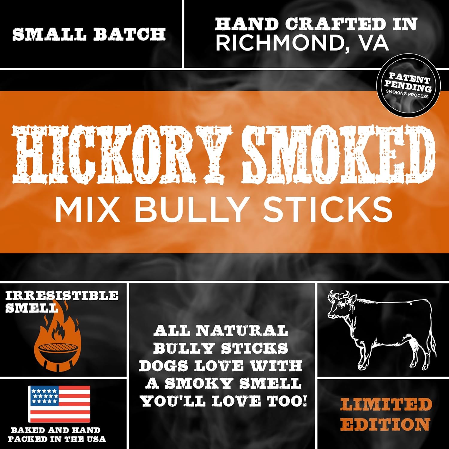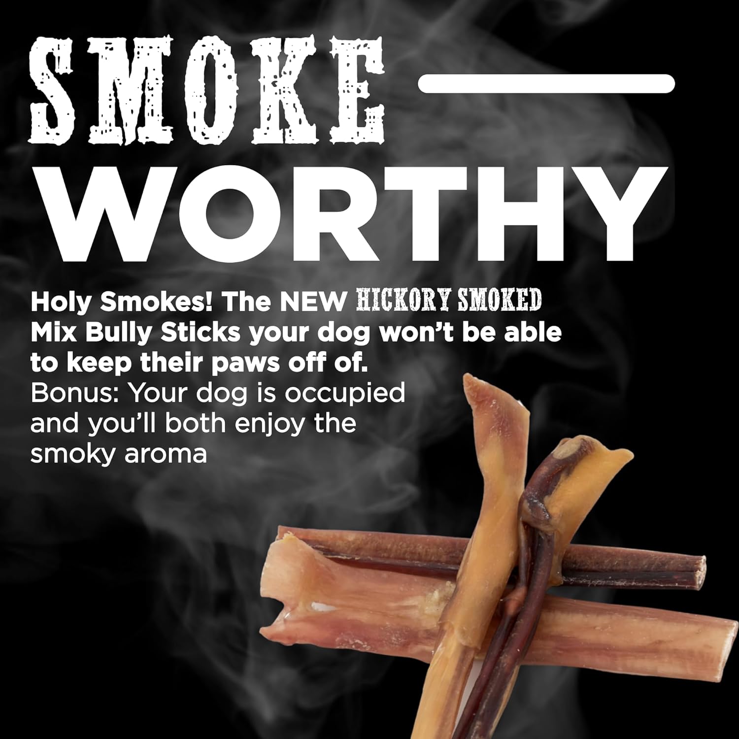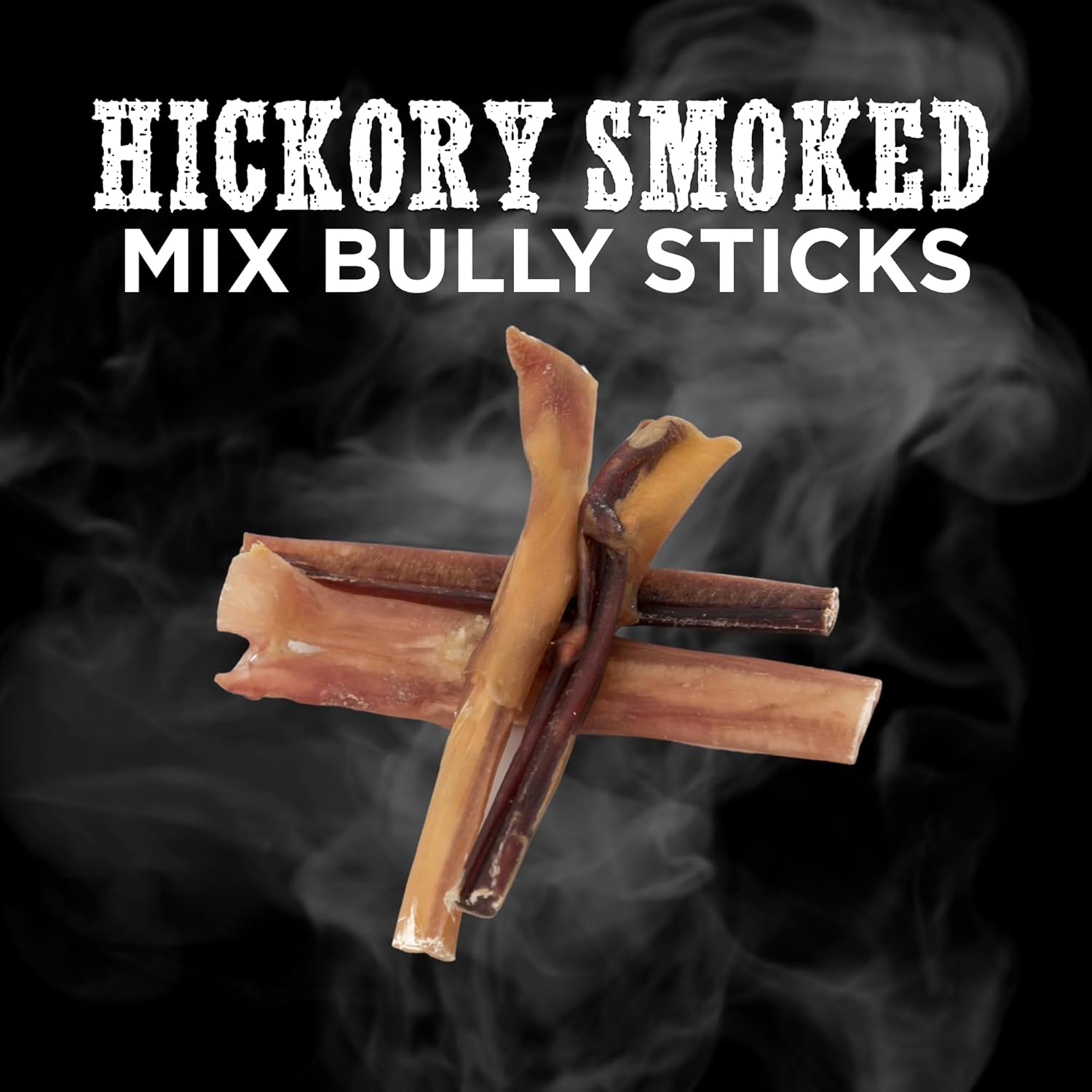 Premium Hickory Smoked 100% Natural 4 Inch Mixed Bully Sticks For Dogs - Odor Free With Smoky Aroma - No Additives, Free-Range Grass-Fed Beef, Grain-Free Rawhide-Free - Mini Bully Sticks, 10 Pack