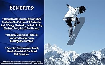 BULLET POINTS : 1 > Specialized b-complex vitamin blend containing the full line of 8 B Vitamins and 9 energy maximizing herbs including Eleuthero Root, Ginkgo, and Ginseng