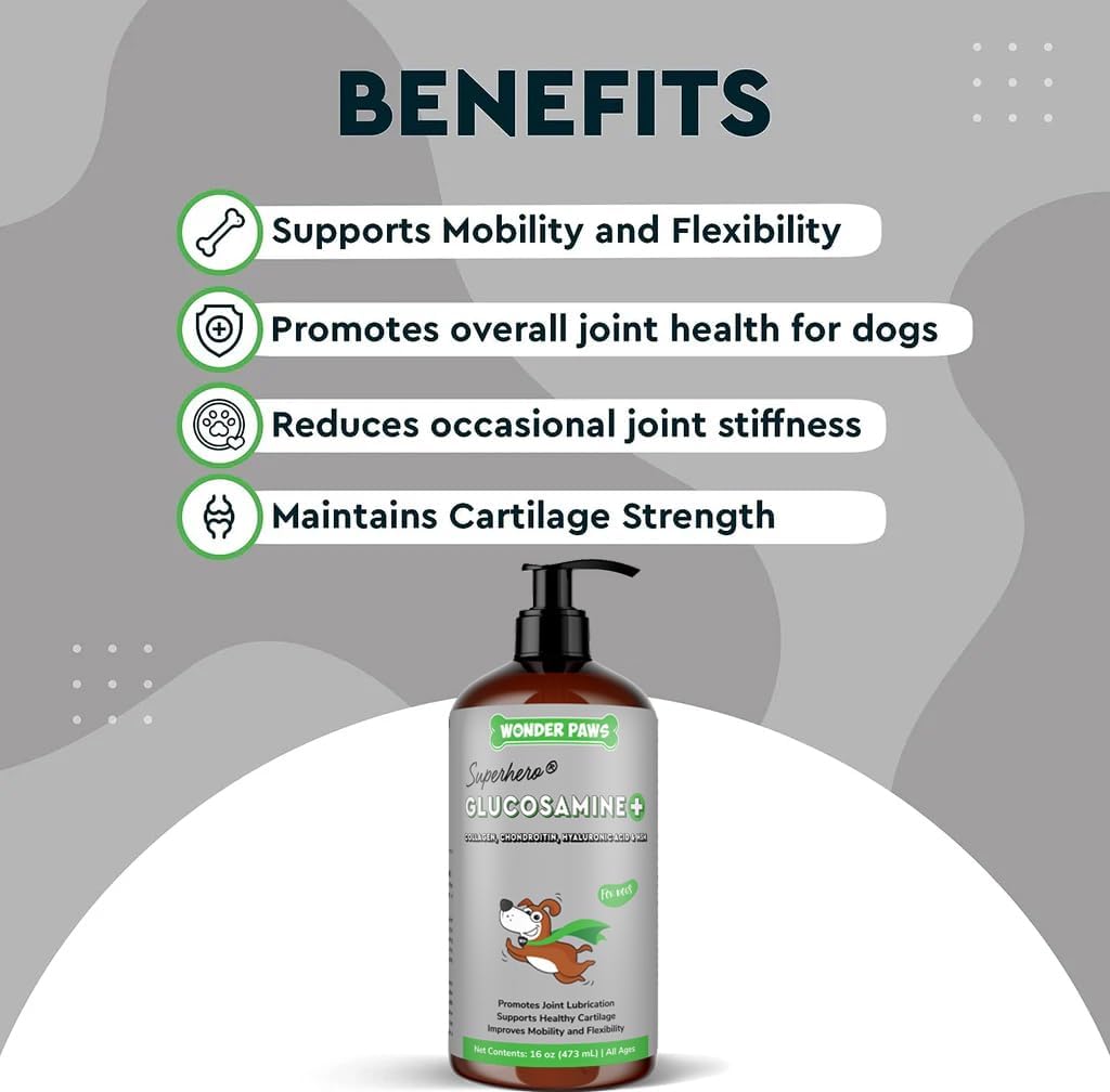 Premium Liquid Glucosamine For Dogs Strength Joint Support, Flexibility, Cartilage & Mobility - Hip And Joint Supplement With Chondroitin, Msm, Collagen & Hyaluronic Acid