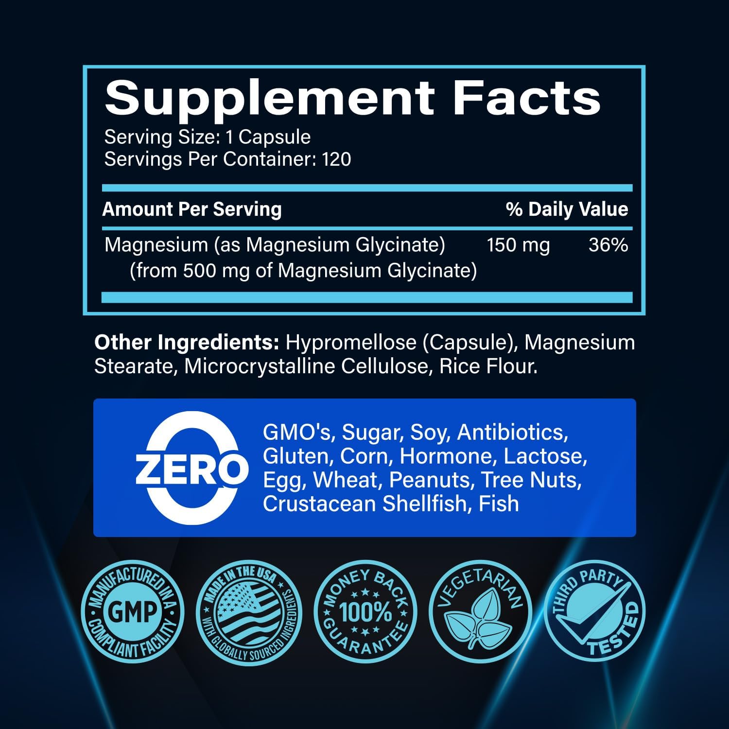 100% Chelated For High Efficacy: Discover The Full Potential Of Our Premium Formulation Packed With A Potent 500Mg Of Chelated Magnesium Glycinate In Each Capsule! This Powerhouse Formula Is Your Key To Supporting Bone Density, Muscle Relaxation, Cardiovascular Health, Nerve Function, Improved Sleep Quality, And Digestive Wellness