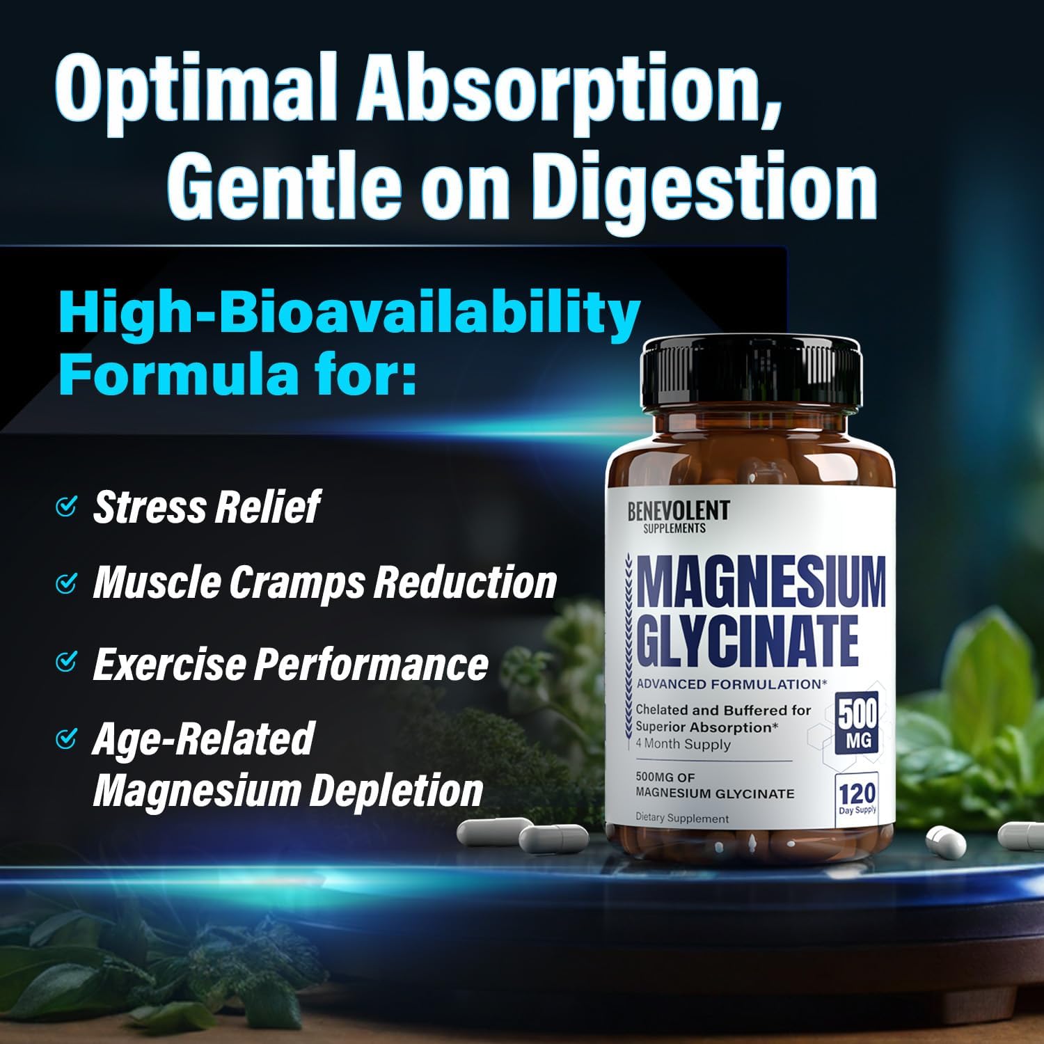 Premium Magnesium Glycinate 500Mg Capsules High Absorption Formula Chelated Buffered Glycinate To Support Digestion, Bone, Sleep & Muscle Health - Made In Usa - 120 Capsules